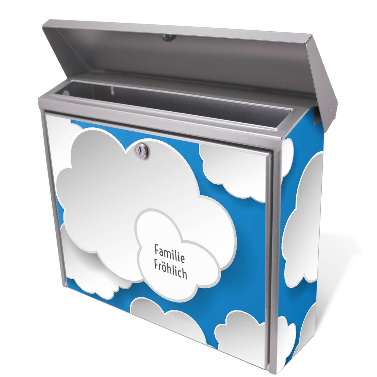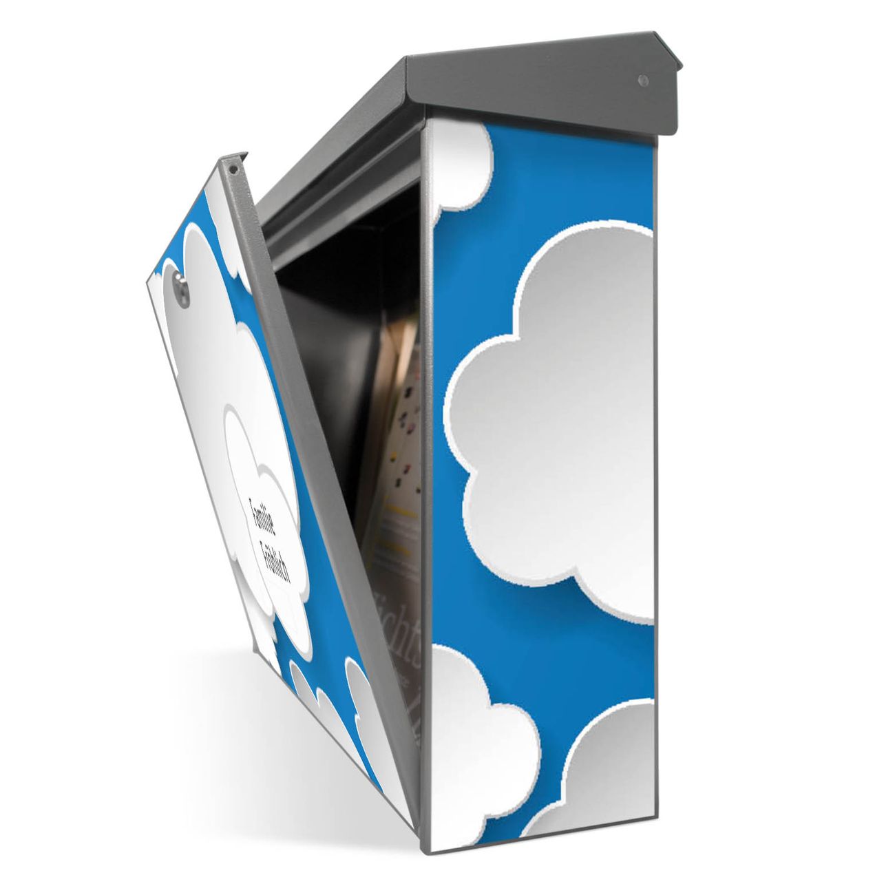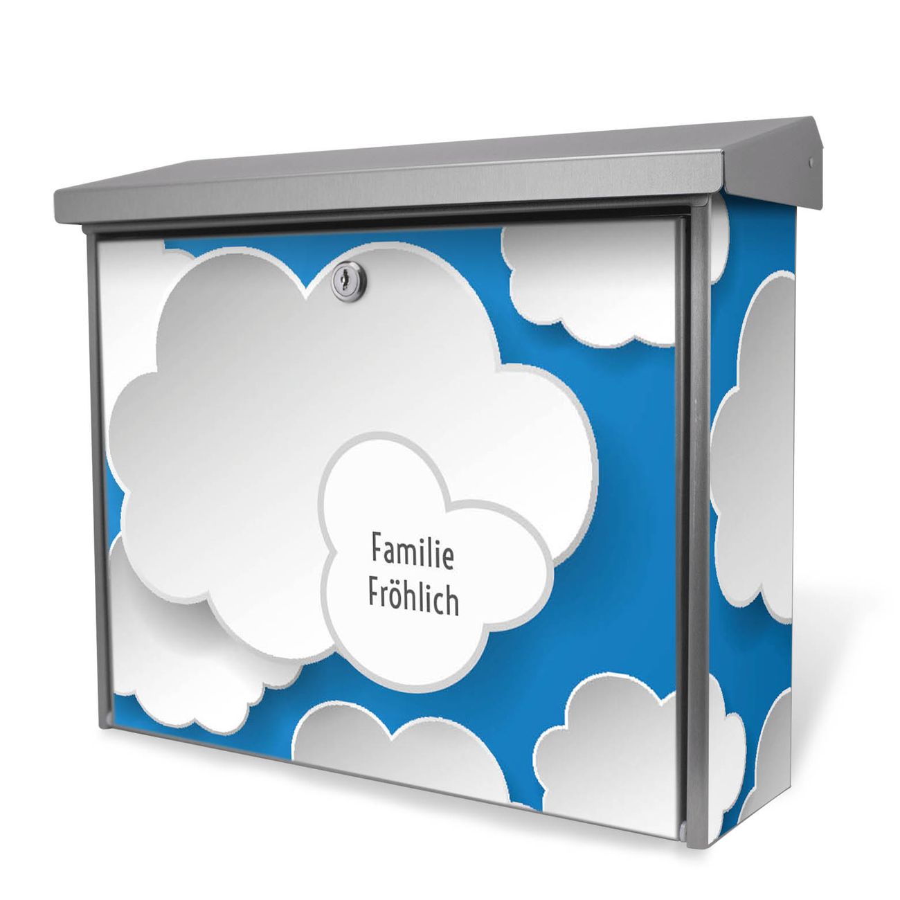 Der Postkasten mit Plastische Wolken Motiv hat ein sehr ansprechendes und zeitloses Design. Unsere Motivpalette hält jede Menge Varianten bereit, ob klassisch, modern, verspielt oder witzig - für jeden haben wir das passende Motiv parat. Der Briefkasten ist das Aushängeschild Ihres Hauses.