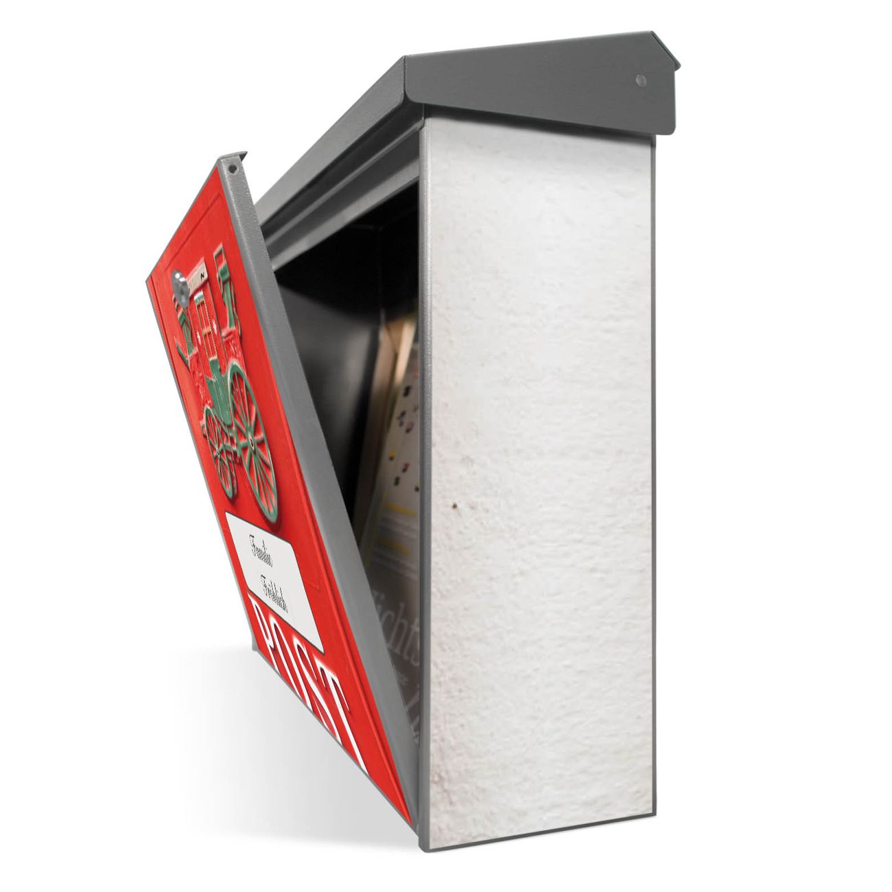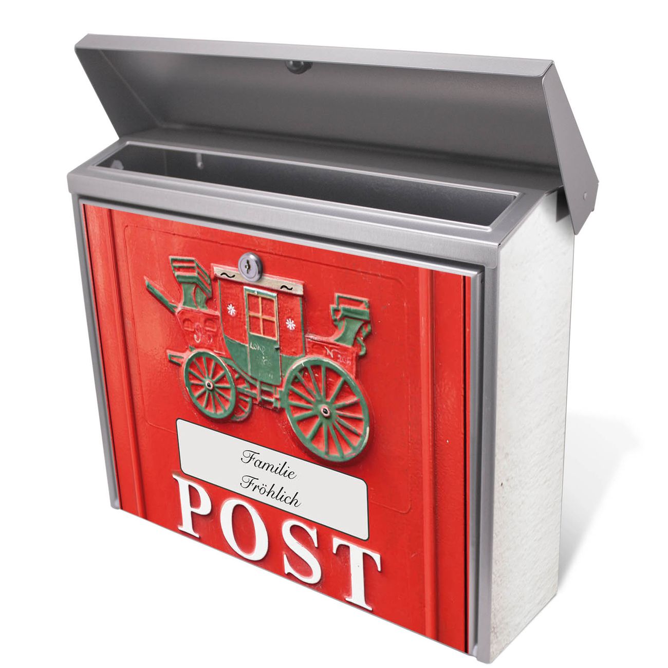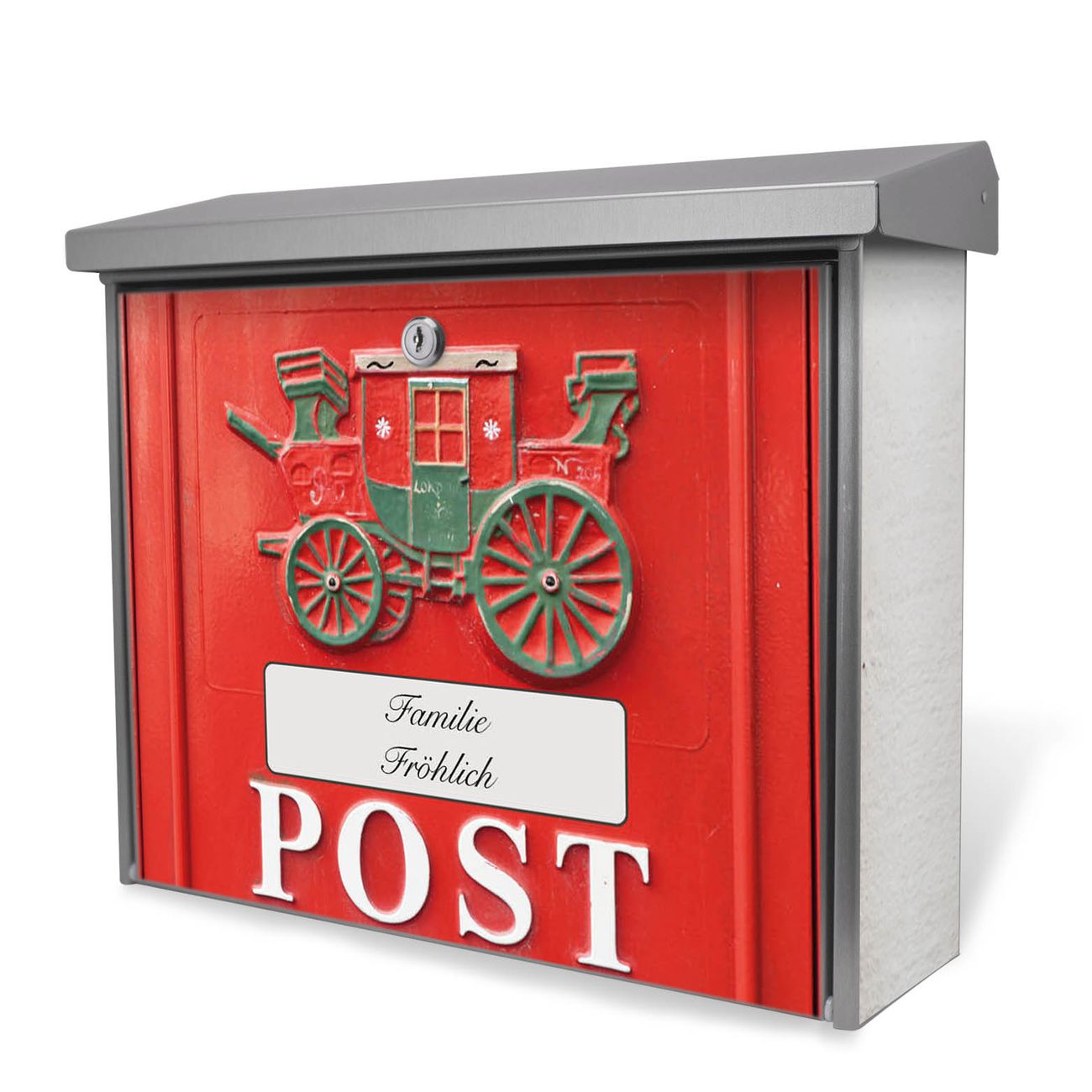 Der Postkasten mit Postkasten Nostalgie Motiv hat ein sehr ansprechendes und zeitloses Design. Unsere Motivpalette hält jede Menge Varianten bereit, ob klassisch, modern, verspielt oder witzig - für jeden haben wir das passende Motiv parat. Der Briefkasten ist das Aushängeschild Ihres Hauses.