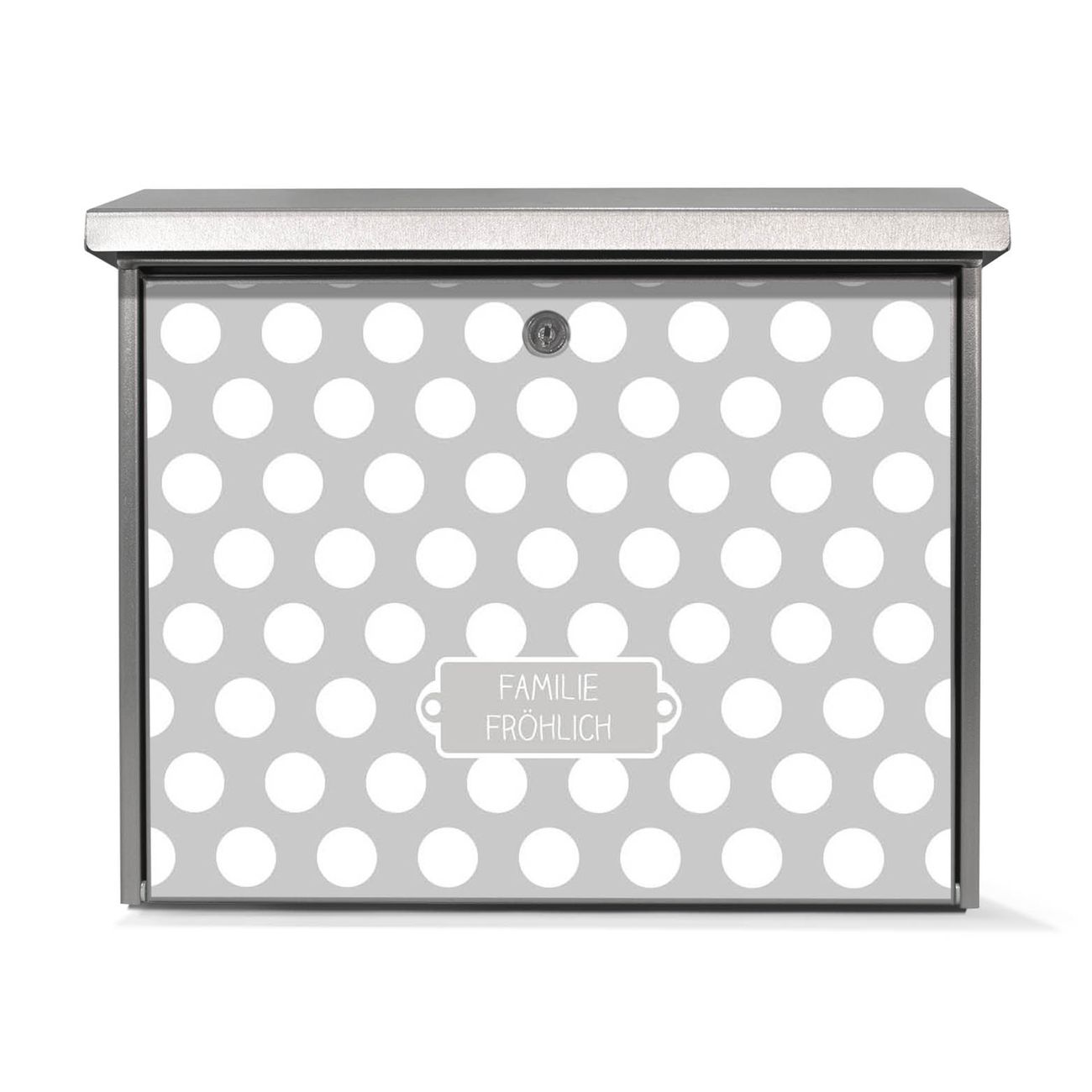 Der Postkasten mit Punkte Grau Motiv hat ein sehr ansprechendes und zeitloses Design. Unsere Motivpalette hält jede Menge Varianten bereit, ob klassisch, modern, verspielt oder witzig - für jeden haben wir das passende Motiv parat. Der Briefkasten ist das Aushängeschild Ihres Hauses.