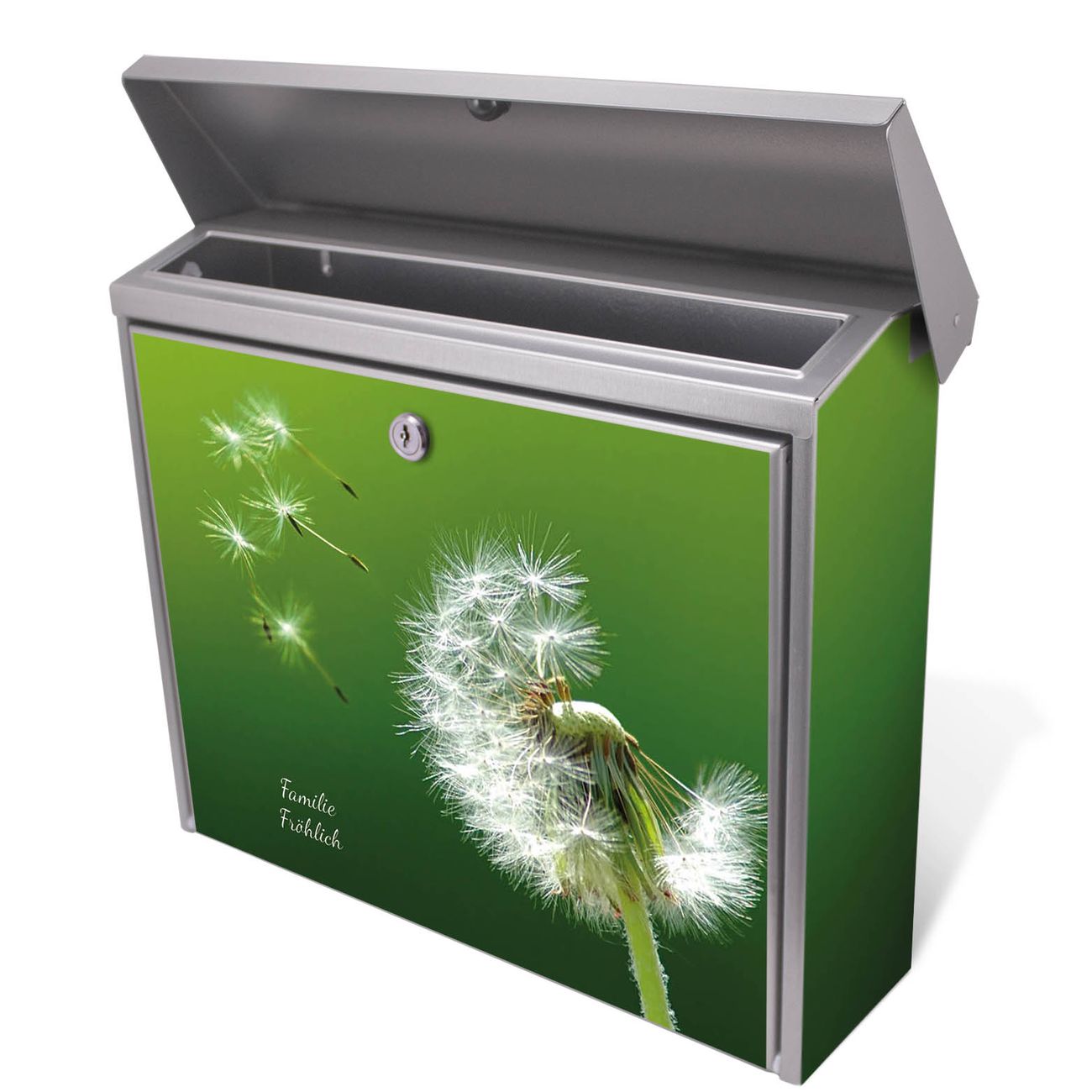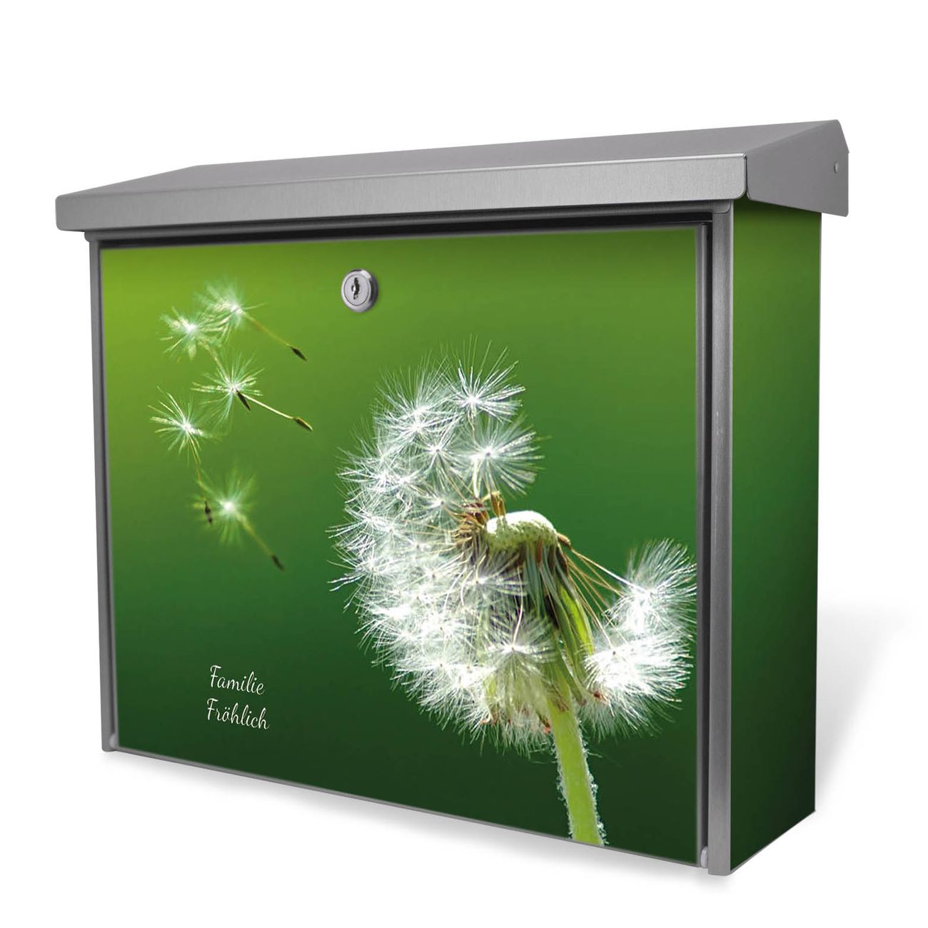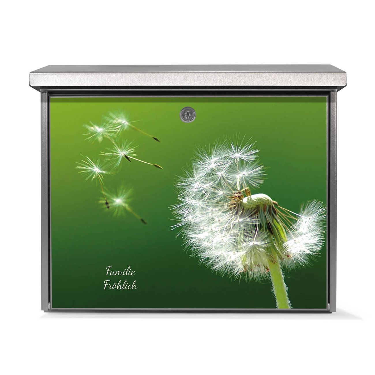 Der Postkasten mit Pusteblume Motiv hat ein sehr ansprechendes und zeitloses Design. Unsere Motivpalette hält jede Menge Varianten bereit, ob klassisch, modern, verspielt oder witzig - für jeden haben wir das passende Motiv parat. Der Briefkasten ist das Aushängeschild Ihres Hauses.
