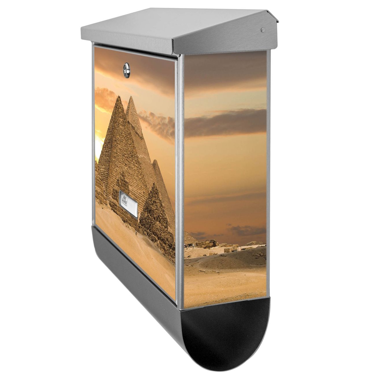 Der Pyramiden Motivbriefkasten hat ein sehr ansprechendes und zeitloses Design. Unsere Motivpalette hält jede Menge Varianten bereit, ob klassisch, modern, verspielt oder witzig - für jeden haben wir das passende Motiv parat. Der Briefkasten mit Zeitungsfach ist Ihr Aushängeschild, heben Sie Sich ab ohne auf Funktionalität zu verzichten.