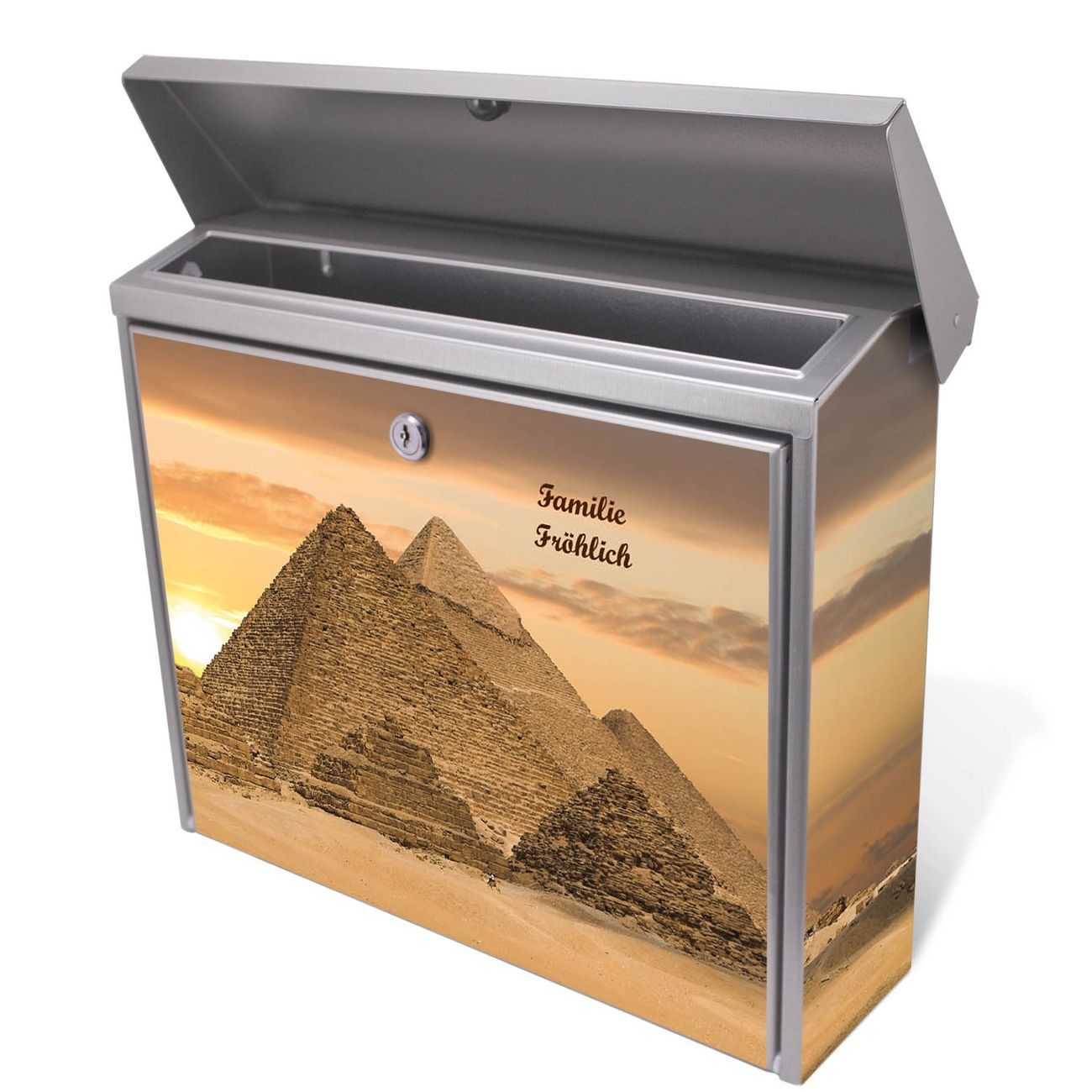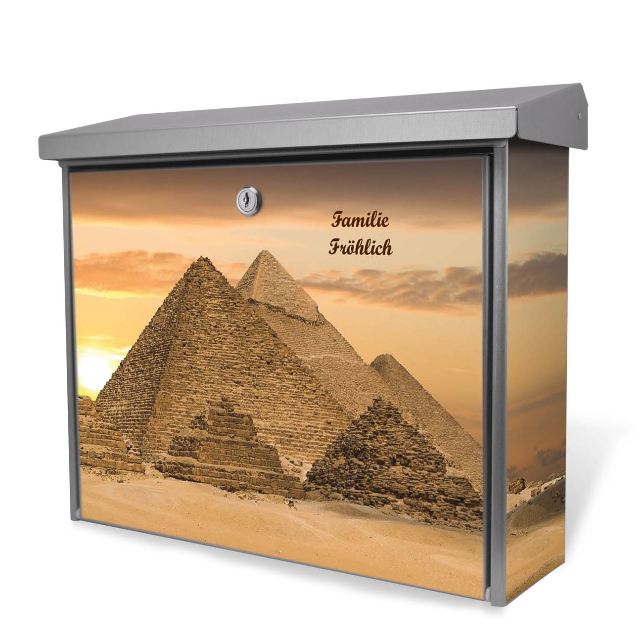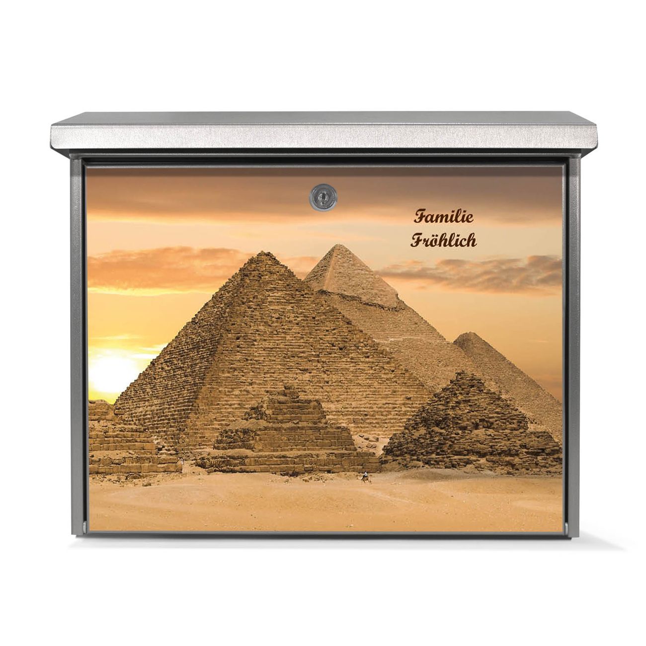 Der Postkasten mit Pyramiden Motiv hat ein sehr ansprechendes und zeitloses Design. Unsere Motivpalette hält jede Menge Varianten bereit, ob klassisch, modern, verspielt oder witzig - für jeden haben wir das passende Motiv parat. Der Briefkasten ist das Aushängeschild Ihres Hauses.