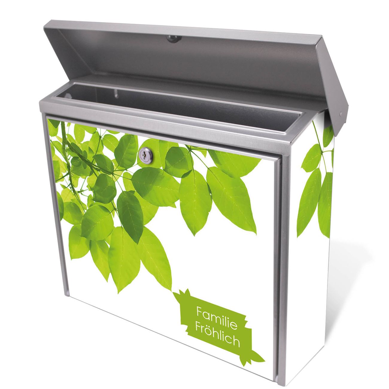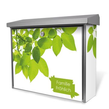 Der Postkasten mit Rahmen Blätter Motiv hat ein sehr ansprechendes und zeitloses Design. Unsere Motivpalette hält jede Menge Varianten bereit, ob klassisch, modern, verspielt oder witzig - für jeden haben wir das passende Motiv parat. Der Briefkasten ist das Aushängeschild Ihres Hauses.