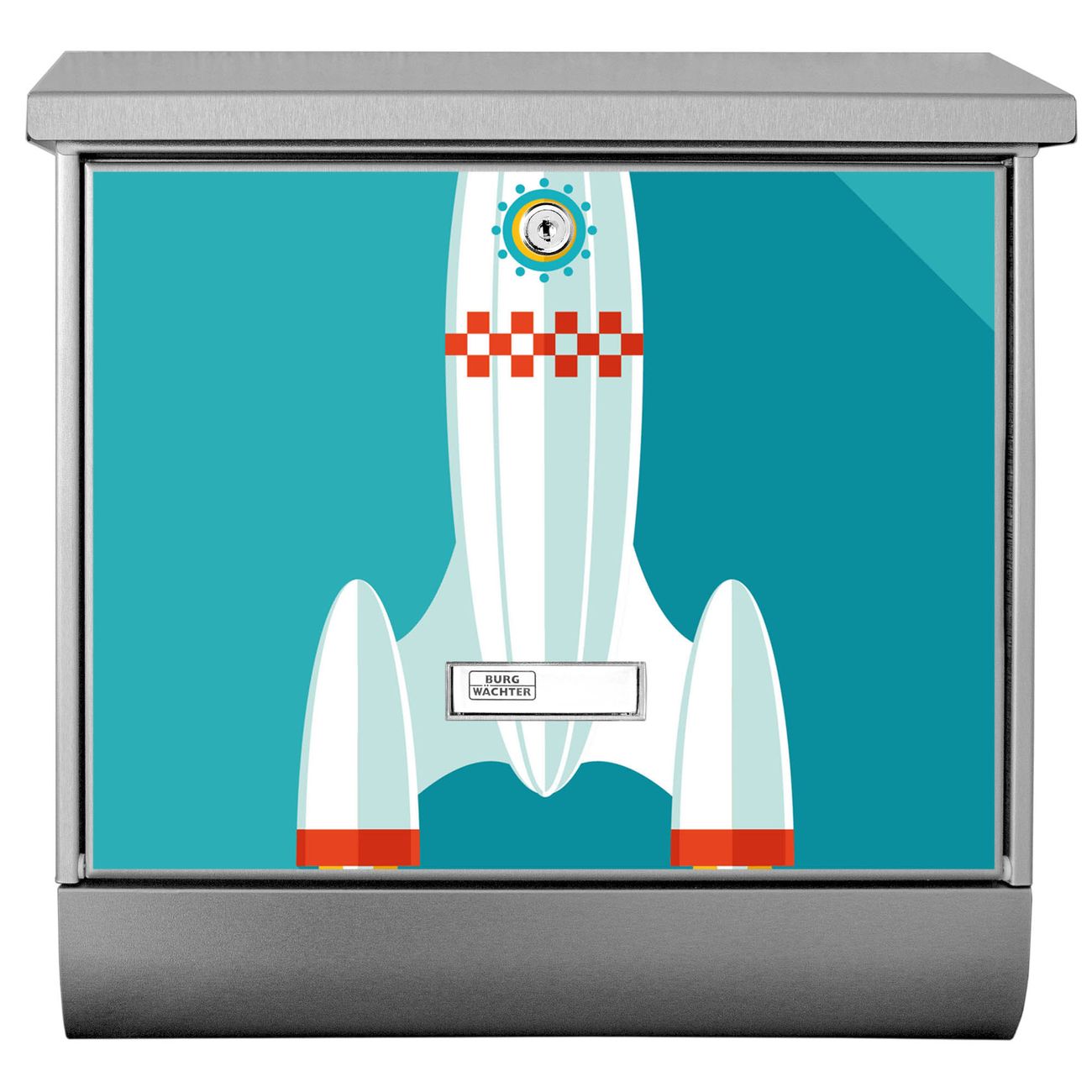 Der BURG-WÄCHTER Edelstahl Briefkasten mit Motiv Rakete und Zeitungsrolle bietet Ihnen mit seinem Fassungsvermögen genügend Platz auch für große A4 Sendungen und Zeitschriften. Das integrierte Regendach schützt Ihre Post vor dem Eindringen von Regen.
