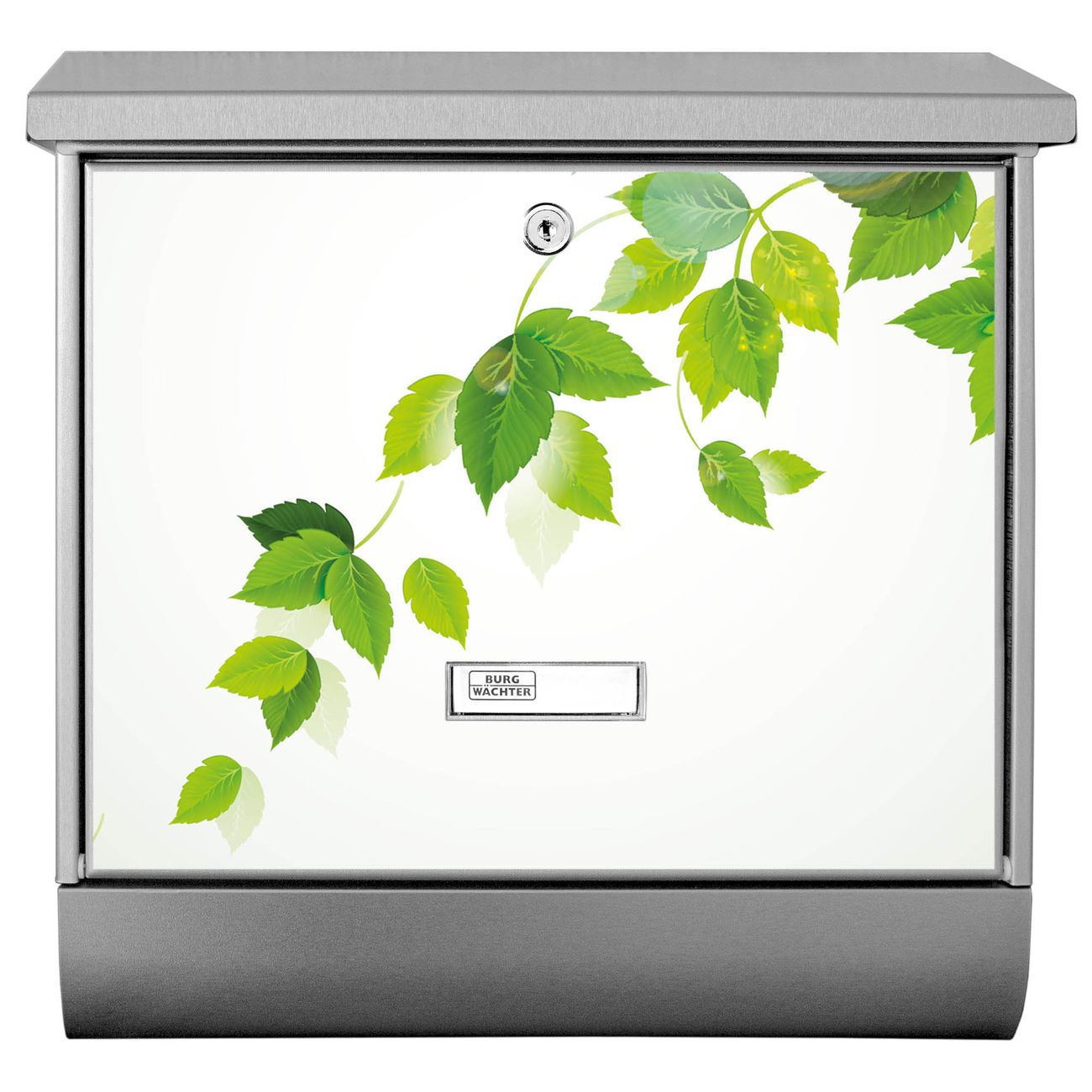 Der BURG-WÄCHTER Edelstahl Briefkasten mit Motiv Ranke Gelb Weiß und Zeitungsrolle bietet Ihnen mit seinem Fassungsvermögen genügend Platz auch für große A4 Sendungen und Zeitschriften. Das integrierte Regendach schützt Ihre Post vor dem Eindringen von Regen.