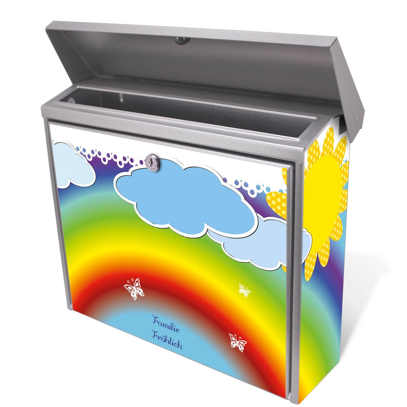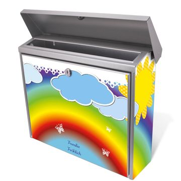 Der Postkasten mit Regenbogen Motiv hat ein sehr ansprechendes und zeitloses Design. Unsere Motivpalette hält jede Menge Varianten bereit, ob klassisch, modern, verspielt oder witzig - für jeden haben wir das passende Motiv parat. Der Briefkasten ist das Aushängeschild Ihres Hauses.