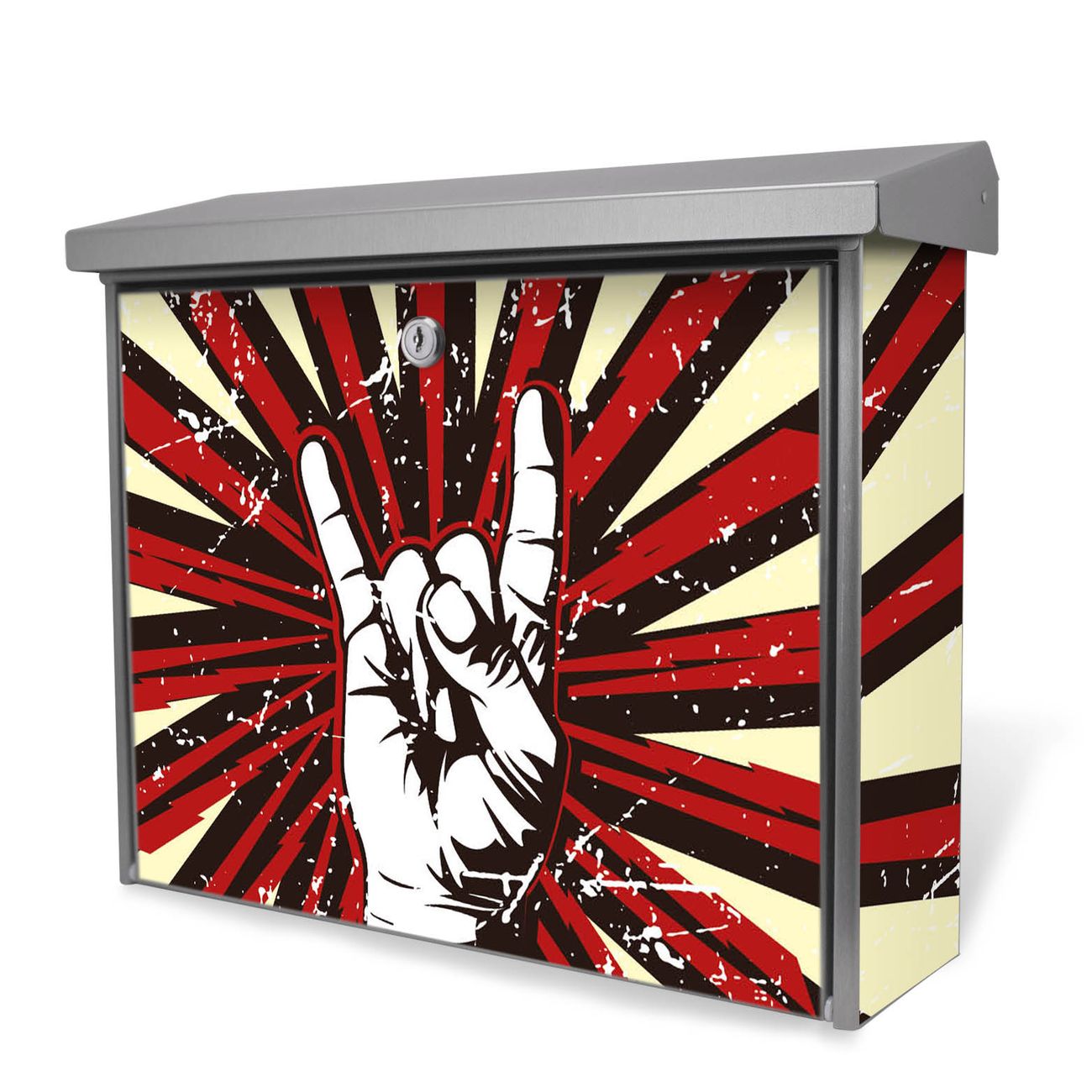 Der Postkasten mit Rock On Motiv hat ein sehr ansprechendes und zeitloses Design. Unsere Motivpalette hält jede Menge Varianten bereit, ob klassisch, modern, verspielt oder witzig - für jeden haben wir das passende Motiv parat. Der Briefkasten ist das Aushängeschild Ihres Hauses.