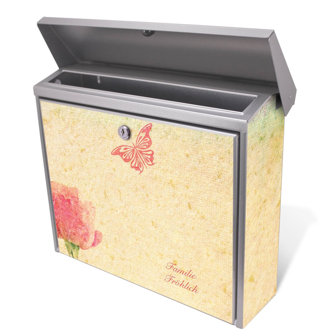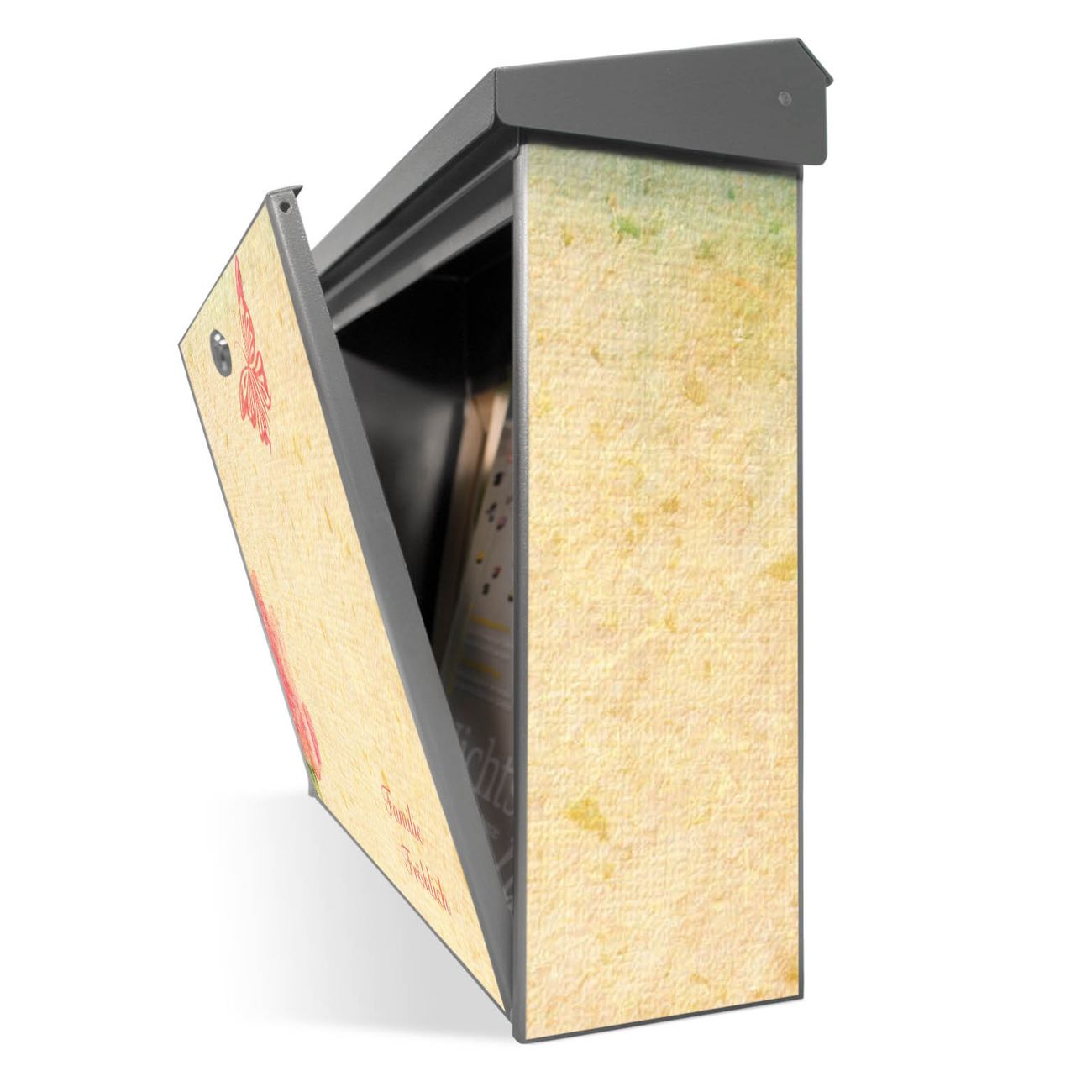 Der Postkasten mit Romantik Motiv hat ein sehr ansprechendes und zeitloses Design. Unsere Motivpalette hält jede Menge Varianten bereit, ob klassisch, modern, verspielt oder witzig - für jeden haben wir das passende Motiv parat. Der Briefkasten ist das Aushängeschild Ihres Hauses.