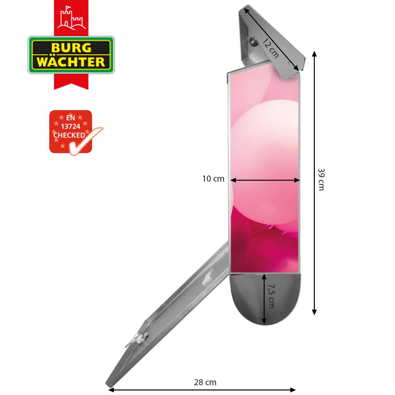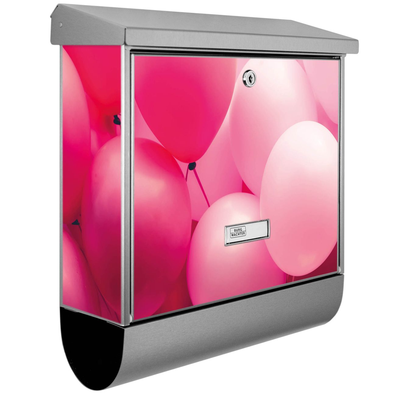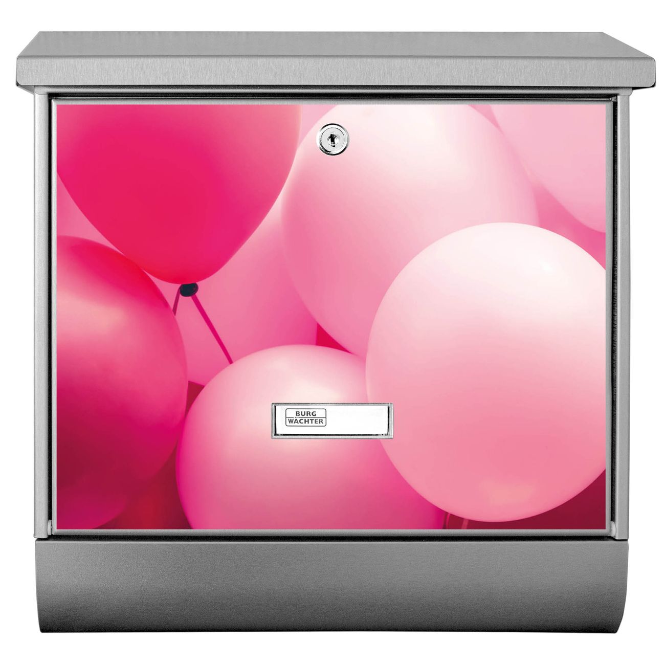 Der BURG-WÄCHTER Edelstahl Briefkasten mit Motiv Rosa Ballons 2 und Zeitungsrolle bietet Ihnen mit seinem Fassungsvermögen genügend Platz auch für große A4 Sendungen und Zeitschriften. Das integrierte Regendach schützt Ihre Post vor dem Eindringen von Regen.
