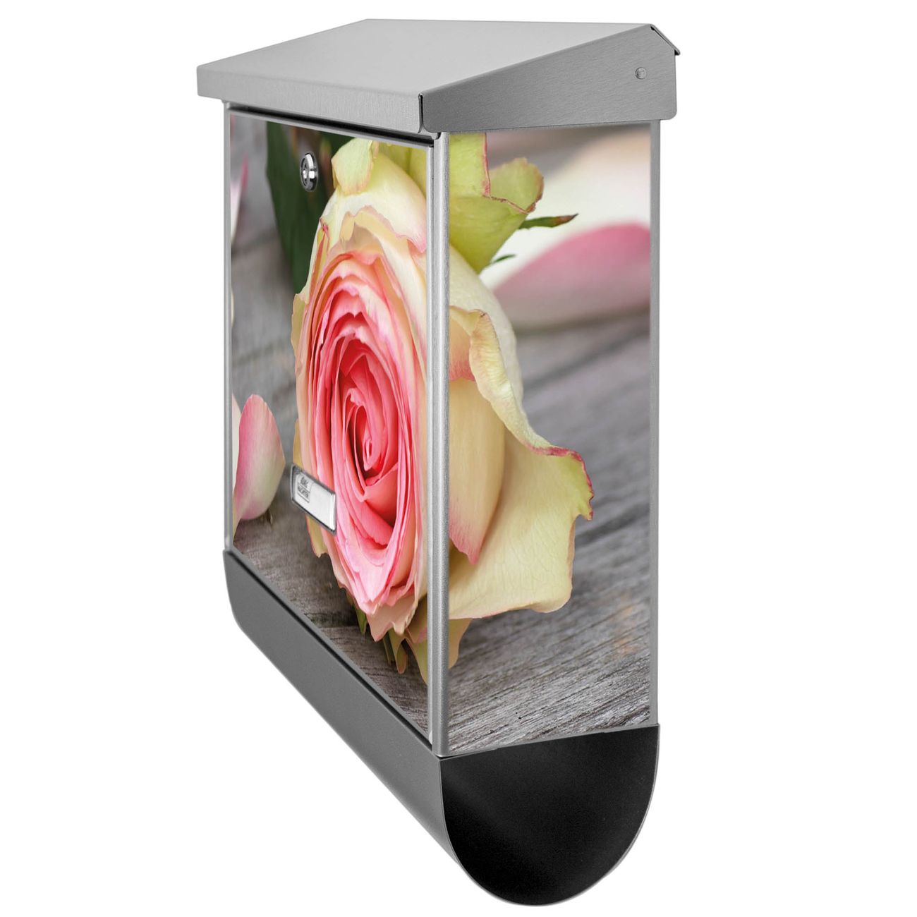 Der Rosa Rose Motivbriefkasten hat ein sehr ansprechendes und zeitloses Design. Unsere Motivpalette hält jede Menge Varianten bereit, ob klassisch, modern, verspielt oder witzig - für jeden haben wir das passende Motiv parat. Der Briefkasten mit Zeitungsfach ist Ihr Aushängeschild, heben Sie Sich ab ohne auf Funktionalität zu verzichten.