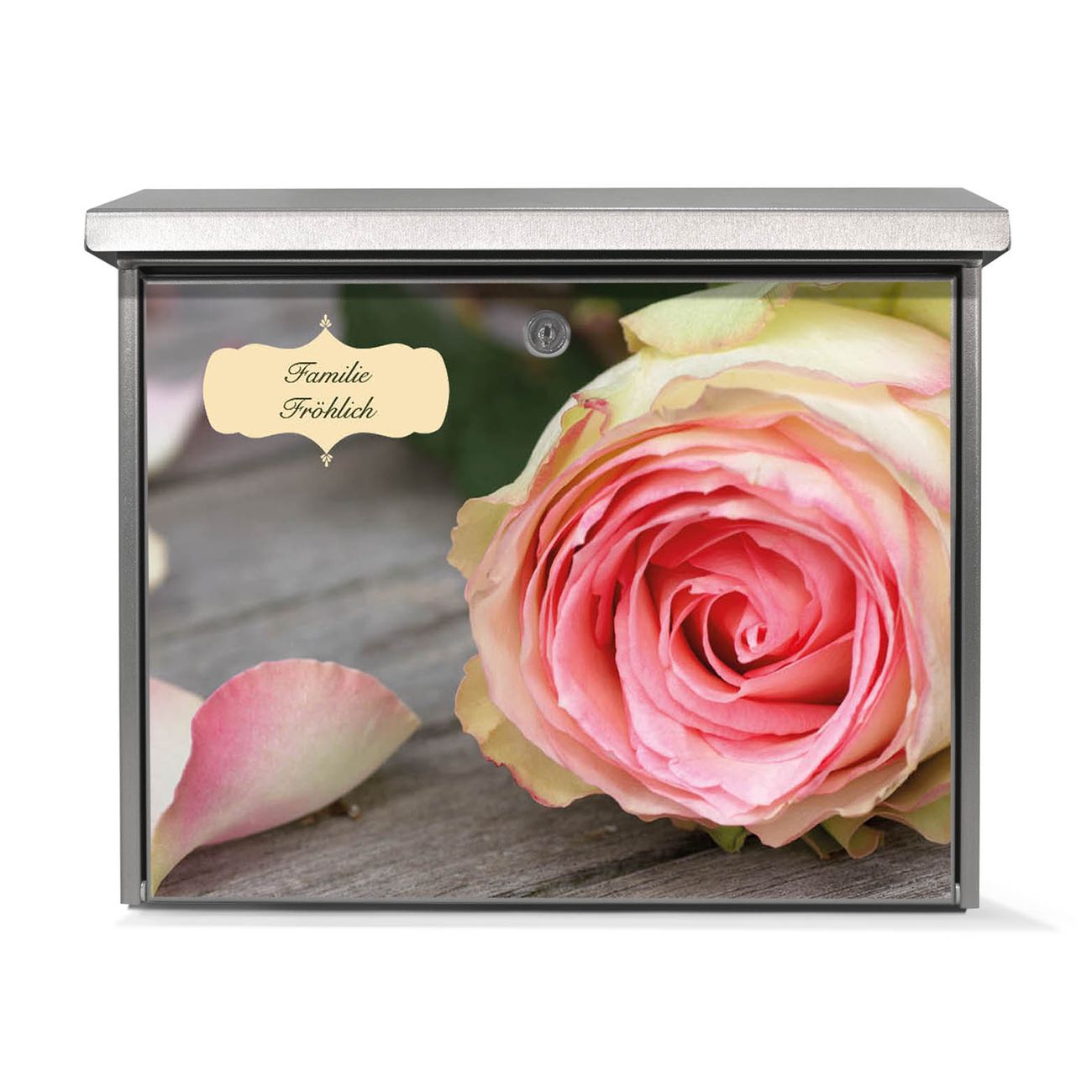 Der Postkasten mit Rosa Rose Motiv hat ein sehr ansprechendes und zeitloses Design. Unsere Motivpalette hält jede Menge Varianten bereit, ob klassisch, modern, verspielt oder witzig - für jeden haben wir das passende Motiv parat. Der Briefkasten ist das Aushängeschild Ihres Hauses.