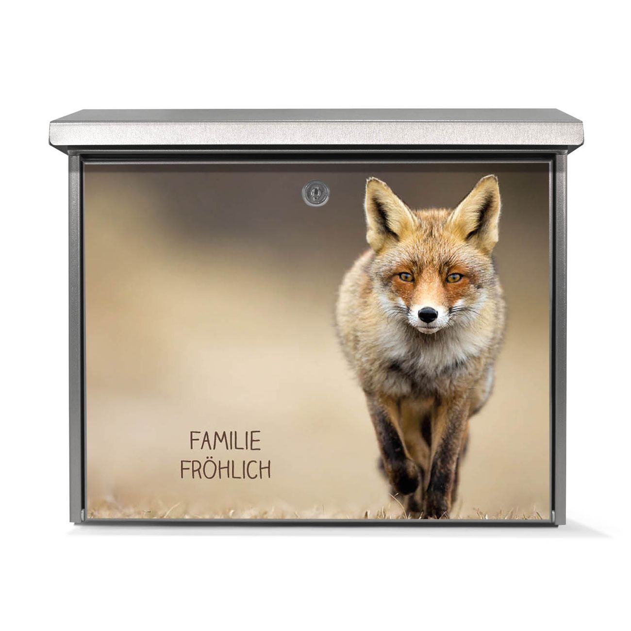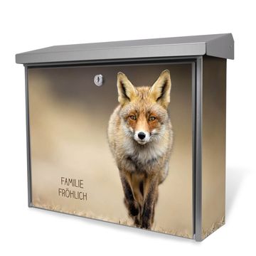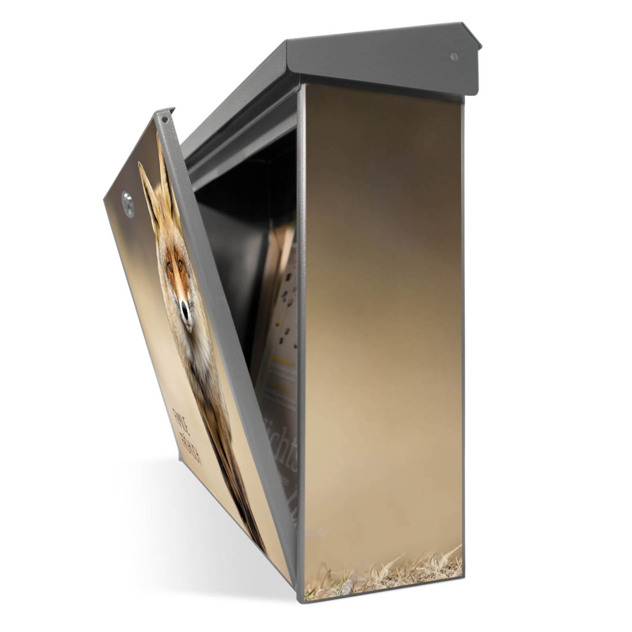 Der Briefkasten besteht aus Edelstahl, einem hochwertigen Material das witterungsbeständig ist. Das Motiv besteht aus einer wetter- und UV-festen Folie, die Ihren Briefkasten zusätzlich vor Kratzern schützt. Der Postkasten ist 31,5cm hoch, 38,5cm breit und 12cm tief. Der Briefeinwurf ist 33,2cm x 2,7cm, Format DIN C4. Der Briefkasten wird mit Montagematerial und zwei Schlüsseln geliefert.