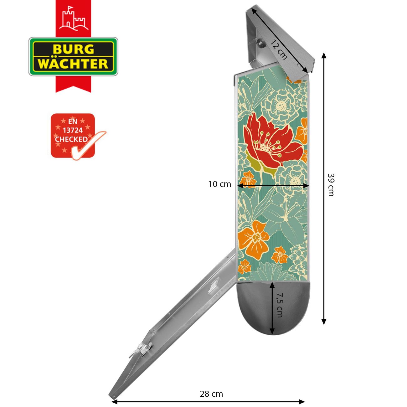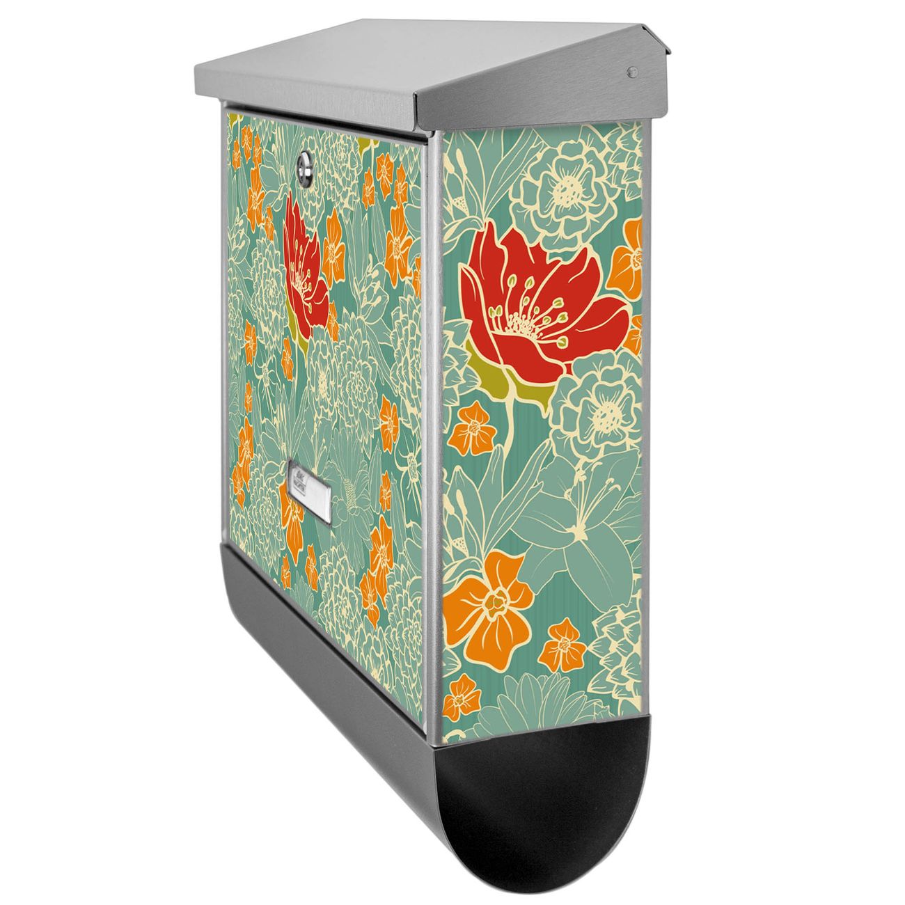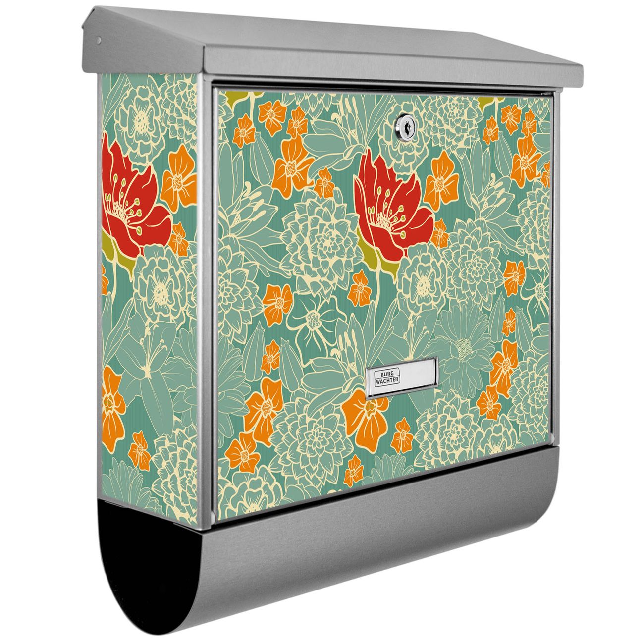 Der BURG-WÄCHTER Edelstahl Briefkasten mit Motiv Rote Blumen und Zeitungsrolle bietet Ihnen mit seinem Fassungsvermögen genügend Platz auch für große A4 Sendungen und Zeitschriften. Das integrierte Regendach schützt Ihre Post vor dem Eindringen von Regen.