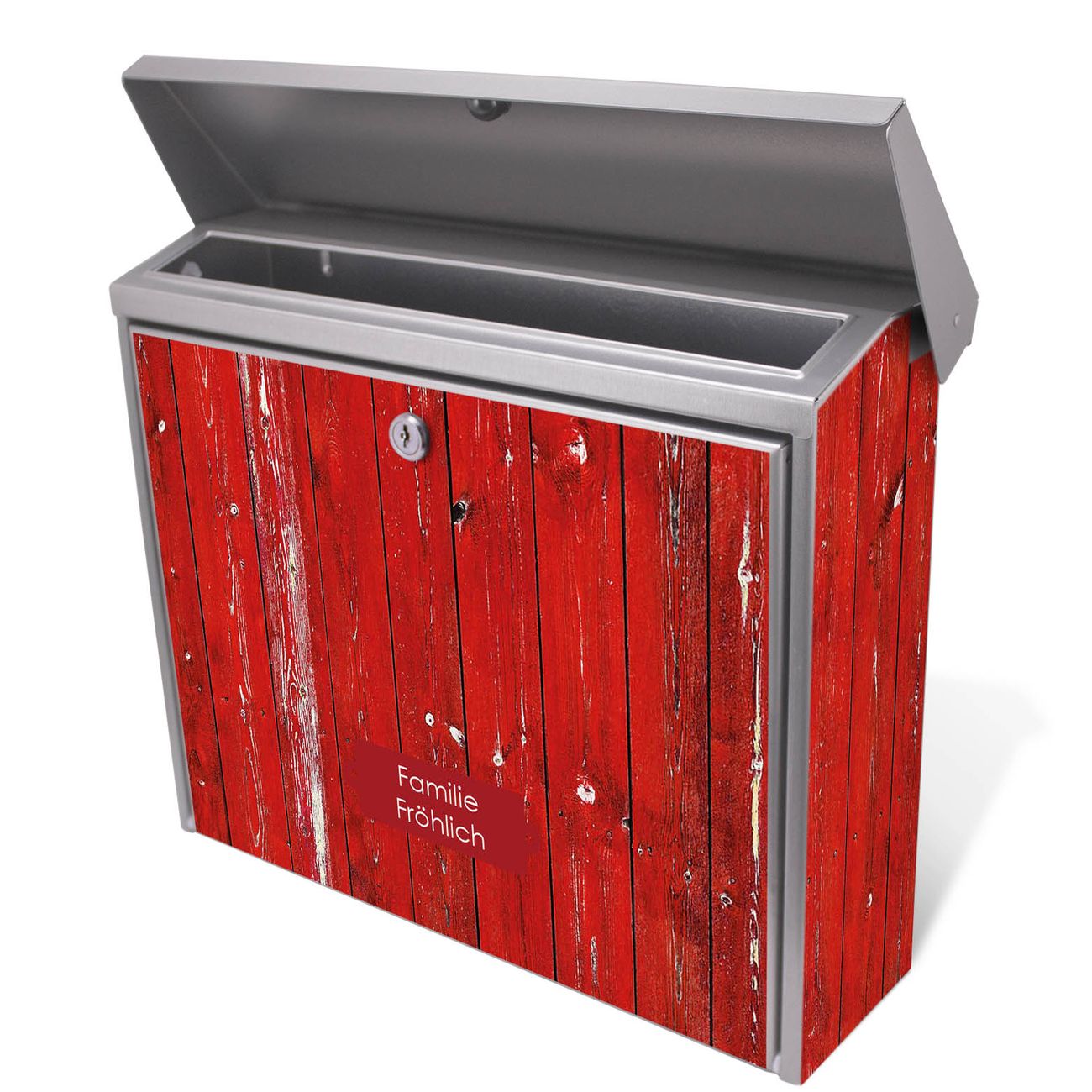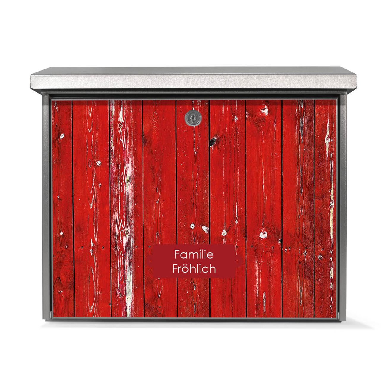 Der Postkasten mit Rote Holzlatten Motiv hat ein sehr ansprechendes und zeitloses Design. Unsere Motivpalette hält jede Menge Varianten bereit, ob klassisch, modern, verspielt oder witzig - für jeden haben wir das passende Motiv parat. Der Briefkasten ist das Aushängeschild Ihres Hauses.