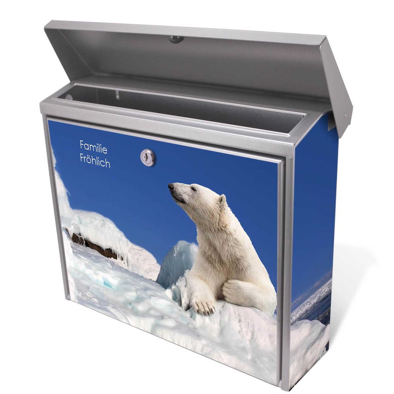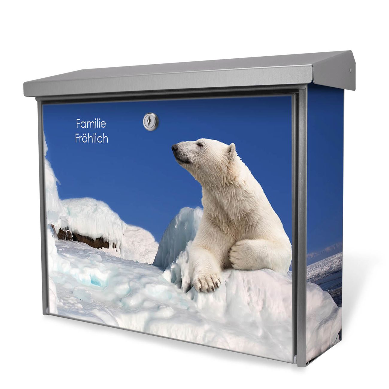 Der Postkasten mit Ruhender Eisbär Motiv hat ein sehr ansprechendes und zeitloses Design. Unsere Motivpalette hält jede Menge Varianten bereit, ob klassisch, modern, verspielt oder witzig - für jeden haben wir das passende Motiv parat. Der Briefkasten ist das Aushängeschild Ihres Hauses.