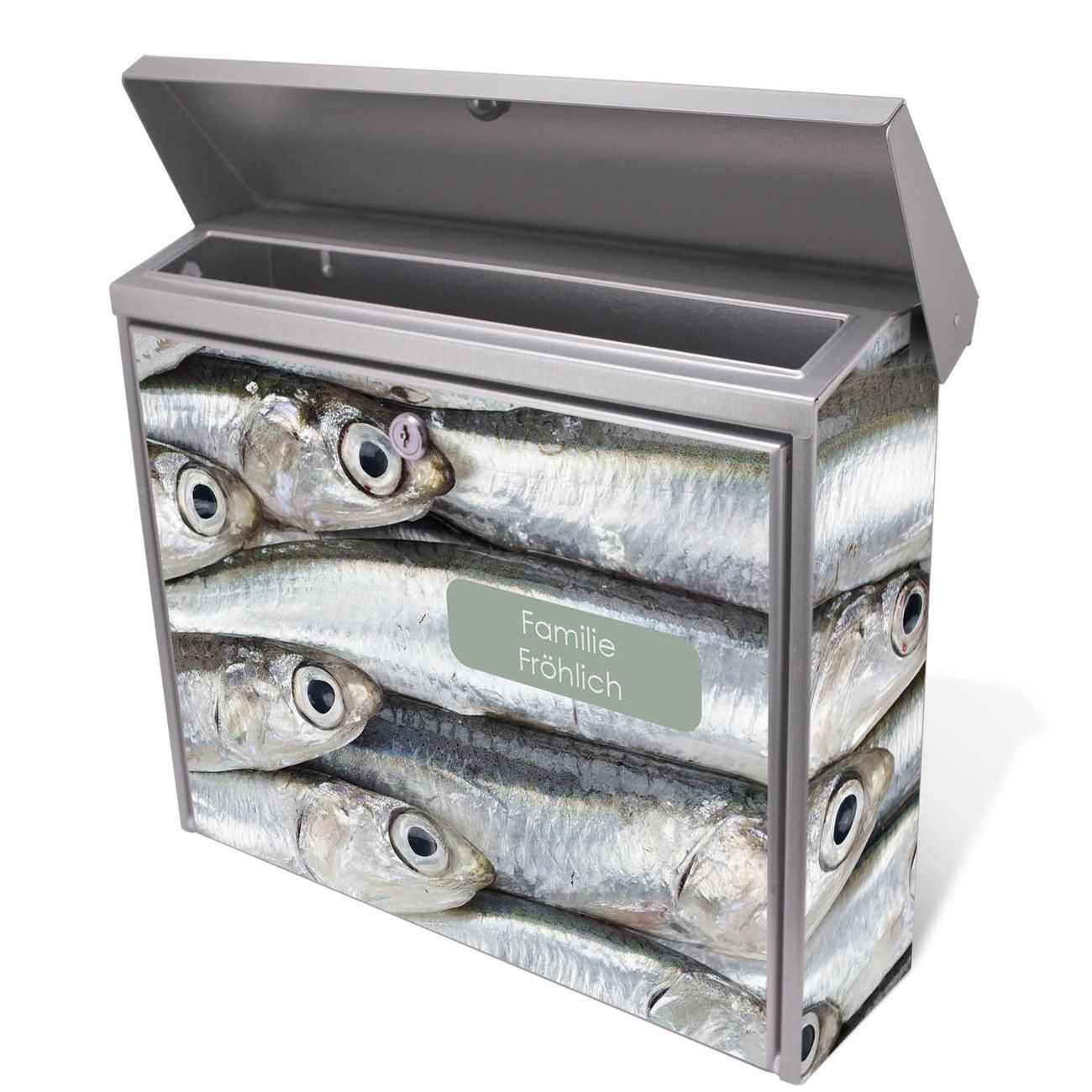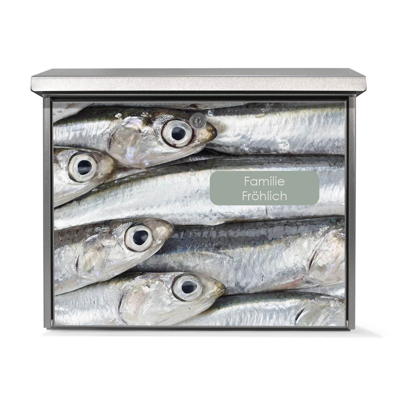 Der Postkasten mit Sardinen Motiv hat ein sehr ansprechendes und zeitloses Design. Unsere Motivpalette hält jede Menge Varianten bereit, ob klassisch, modern, verspielt oder witzig - für jeden haben wir das passende Motiv parat. Der Briefkasten ist das Aushängeschild Ihres Hauses.