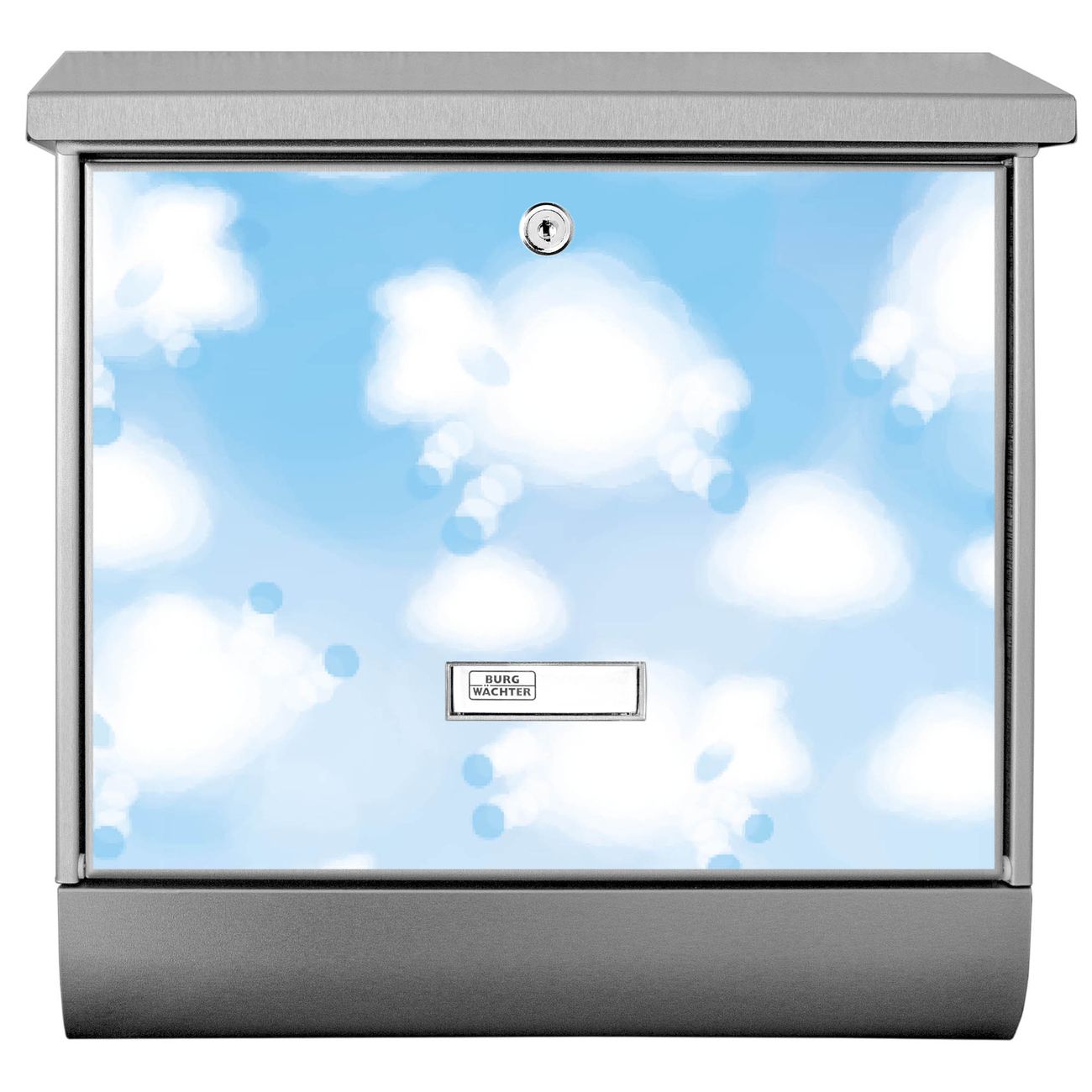 Der Schäfchenwolken Motivbriefkasten hat ein sehr ansprechendes und zeitloses Design. Unsere Motivpalette hält jede Menge Varianten bereit, ob klassisch, modern, verspielt oder witzig - für jeden haben wir das passende Motiv parat. Der Briefkasten mit Zeitungsfach ist Ihr Aushängeschild, heben Sie Sich ab ohne auf Funktionalität zu verzichten.