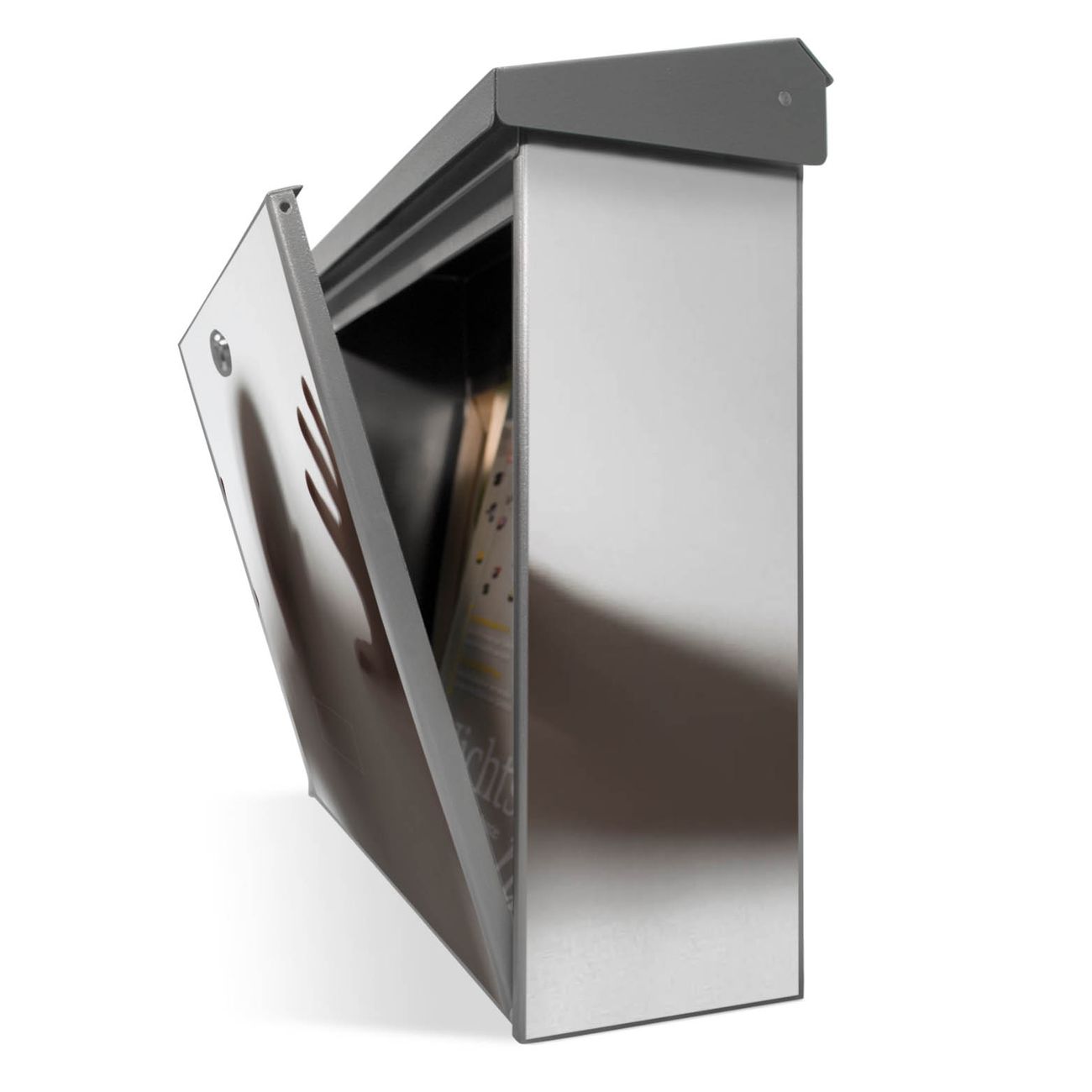 Der BURG-WÄCHTER Edelstahl Briefkasten mit Motiv Schattenspiel bietet Ihnen mit seinem Fassungsvermögen genügend Platz auch für große A4 Sendungen und Zeitschriften. Das integrierte Regendach schützt Ihre Post vor dem Eindringen von Regen.