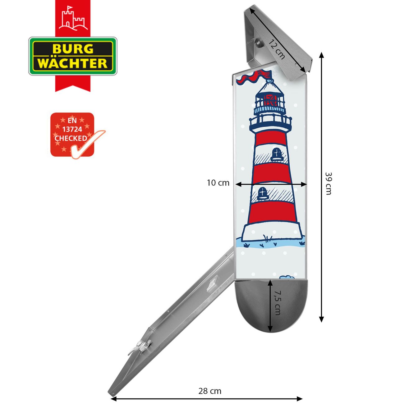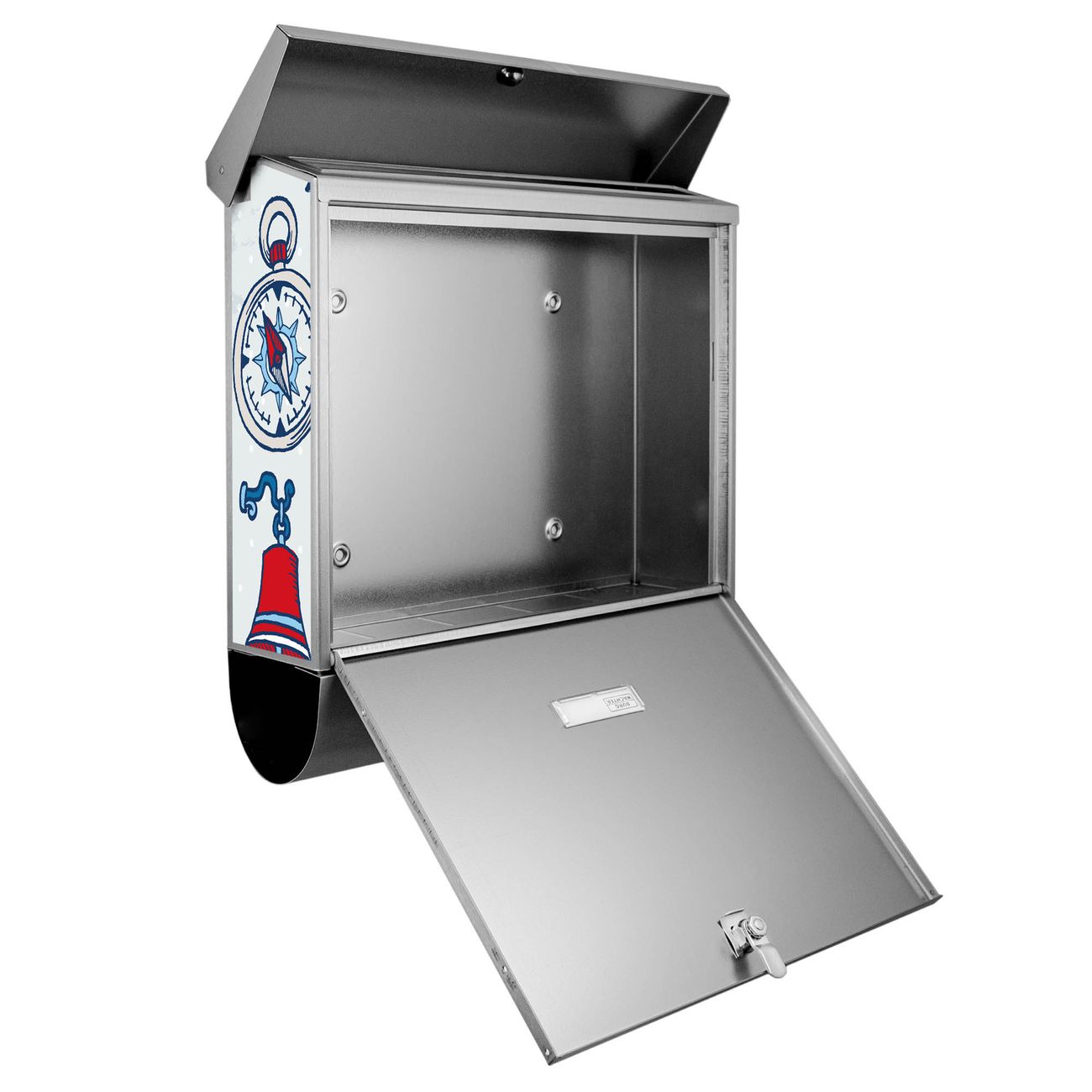 Der BURG-WÄCHTER Edelstahl Briefkasten mit Motiv Schiff Ahoj und Zeitungsrolle bietet Ihnen mit seinem Fassungsvermögen genügend Platz auch für große A4 Sendungen und Zeitschriften. Das integrierte Regendach schützt Ihre Post vor dem Eindringen von Regen.