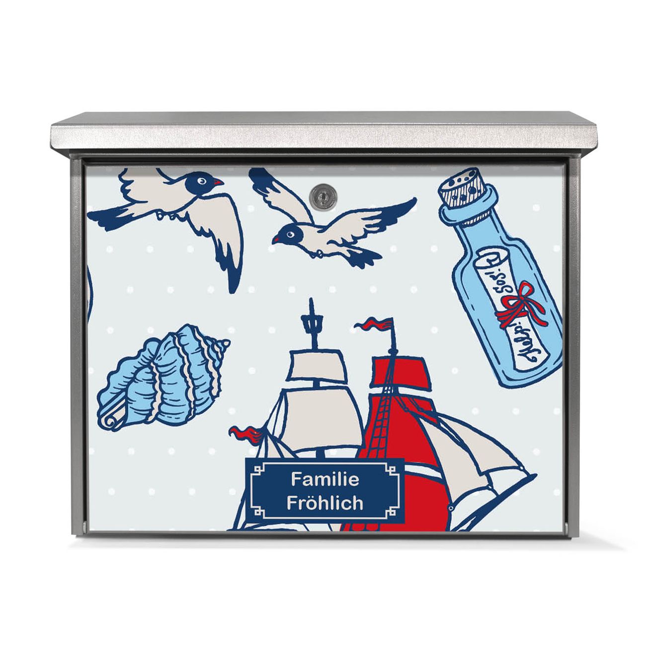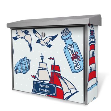 Der Postkasten mit Schiff Ahoj Motiv hat ein sehr ansprechendes und zeitloses Design. Unsere Motivpalette hält jede Menge Varianten bereit, ob klassisch, modern, verspielt oder witzig - für jeden haben wir das passende Motiv parat. Der Briefkasten ist das Aushängeschild Ihres Hauses.