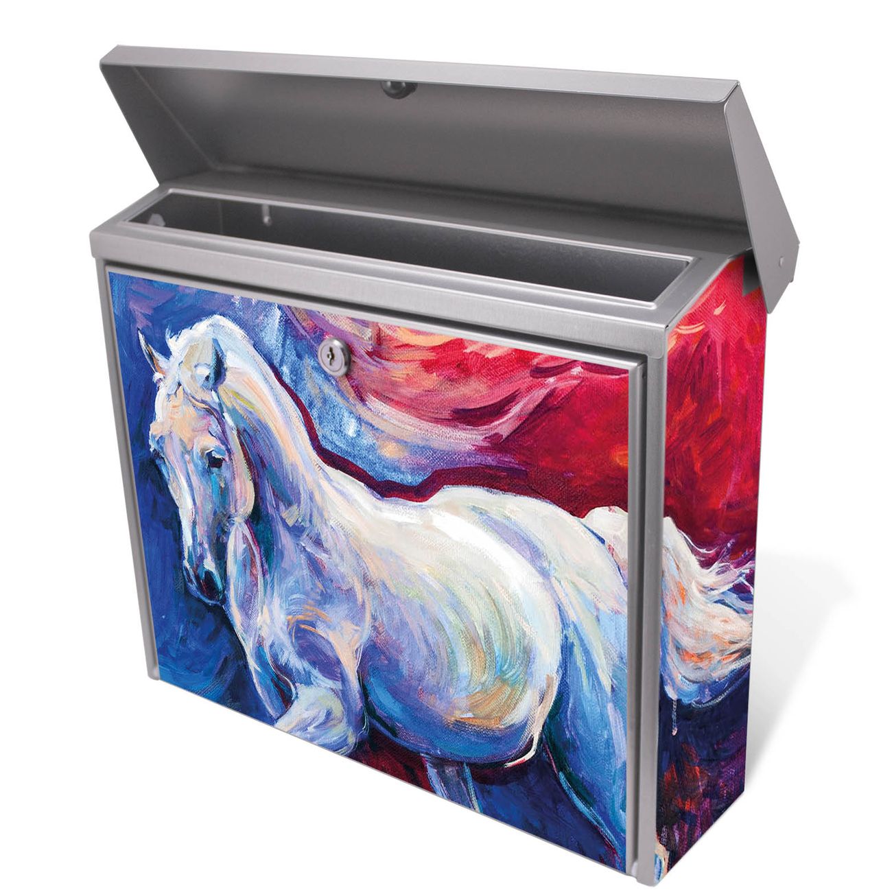 Der Postkasten mit Schimmel Motiv hat ein sehr ansprechendes und zeitloses Design. Unsere Motivpalette hält jede Menge Varianten bereit, ob klassisch, modern, verspielt oder witzig - für jeden haben wir das passende Motiv parat. Der Briefkasten ist das Aushängeschild Ihres Hauses.