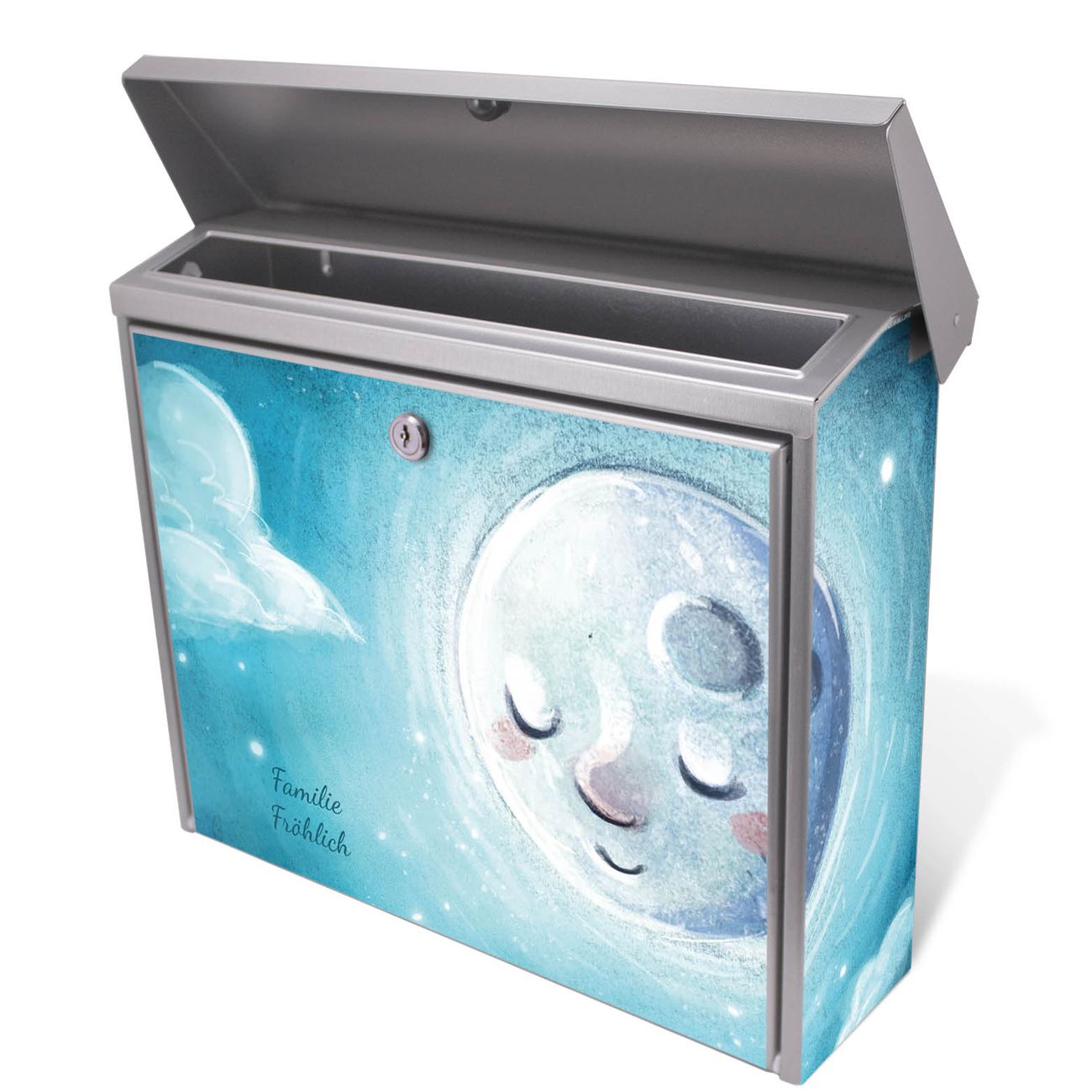 Der Postkasten mit schlafender Mond Motiv hat ein sehr ansprechendes und zeitloses Design. Unsere Motivpalette hält jede Menge Varianten bereit, ob klassisch, modern, verspielt oder witzig - für jeden haben wir das passende Motiv parat. Der Briefkasten ist das Aushängeschild Ihres Hauses.