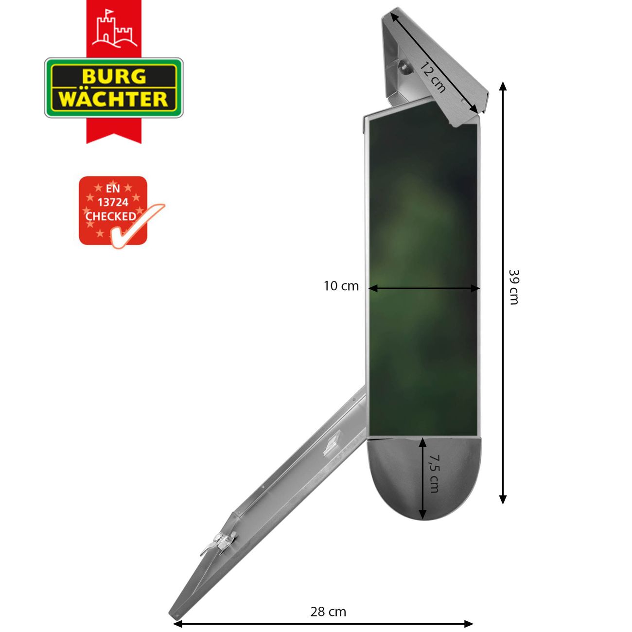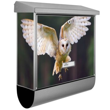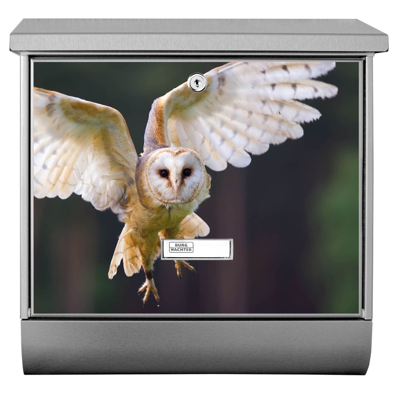 Der BURG-WÄCHTER Edelstahl Briefkasten mit Motiv Schleiereule und Zeitungsrolle bietet Ihnen mit seinem Fassungsvermögen genügend Platz auch für große A4 Sendungen und Zeitschriften. Das integrierte Regendach schützt Ihre Post vor dem Eindringen von Regen.