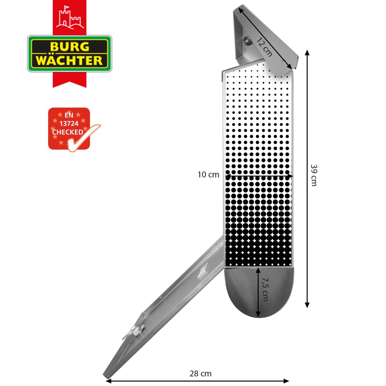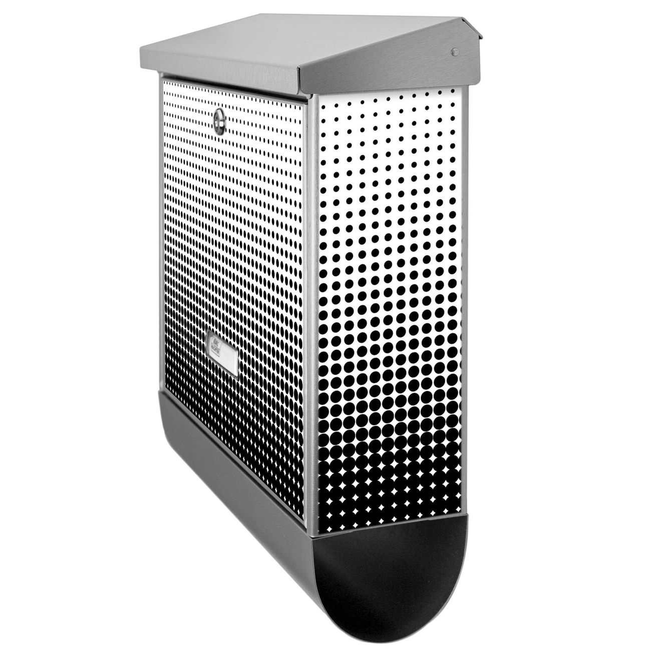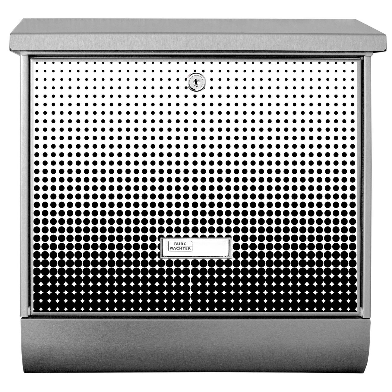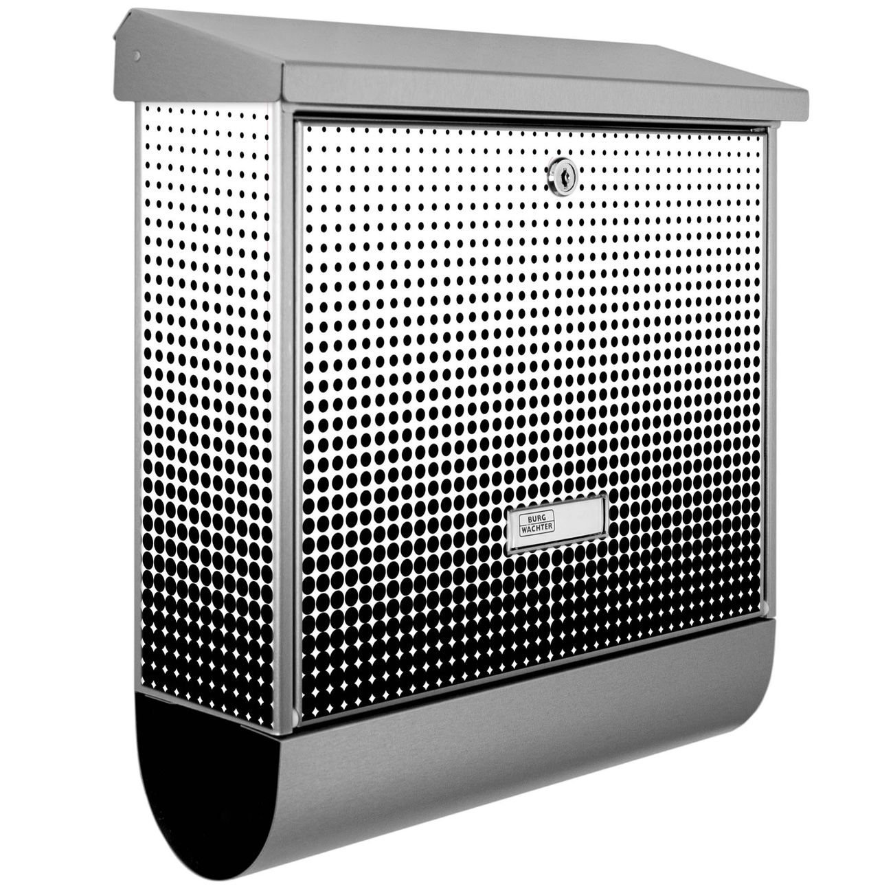 Der BURG-WÄCHTER Edelstahl Briefkasten mit Motiv Schwarz Weiß und Zeitungsrolle bietet Ihnen mit seinem Fassungsvermögen genügend Platz auch für große A4 Sendungen und Zeitschriften. Das integrierte Regendach schützt Ihre Post vor dem Eindringen von Regen.