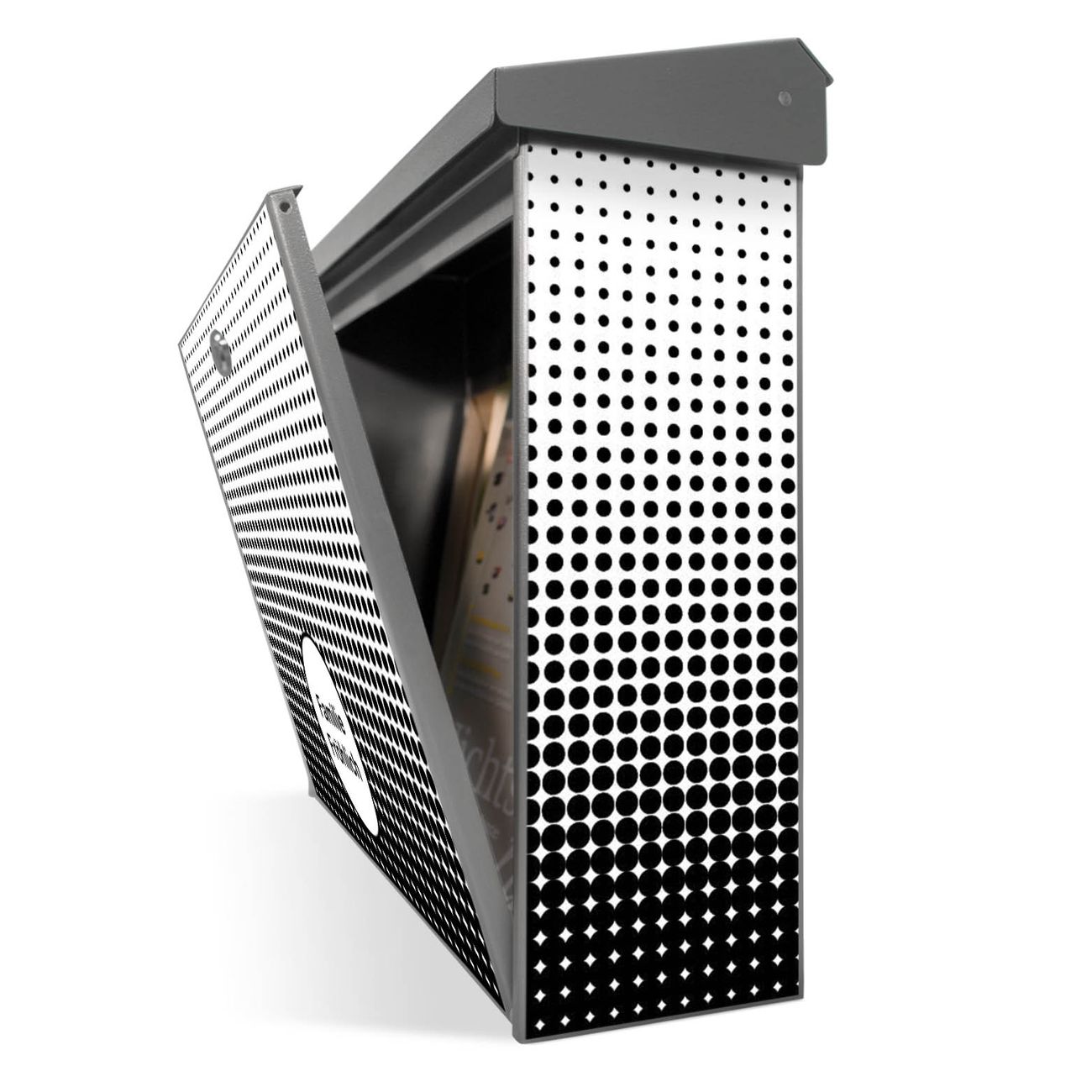 Der BURG-WÄCHTER Edelstahl Briefkasten mit Motiv Schwarz Weiß bietet Ihnen mit seinem Fassungsvermögen genügend Platz auch für große A4 Sendungen und Zeitschriften. Das integrierte Regendach schützt Ihre Post vor dem Eindringen von Regen.