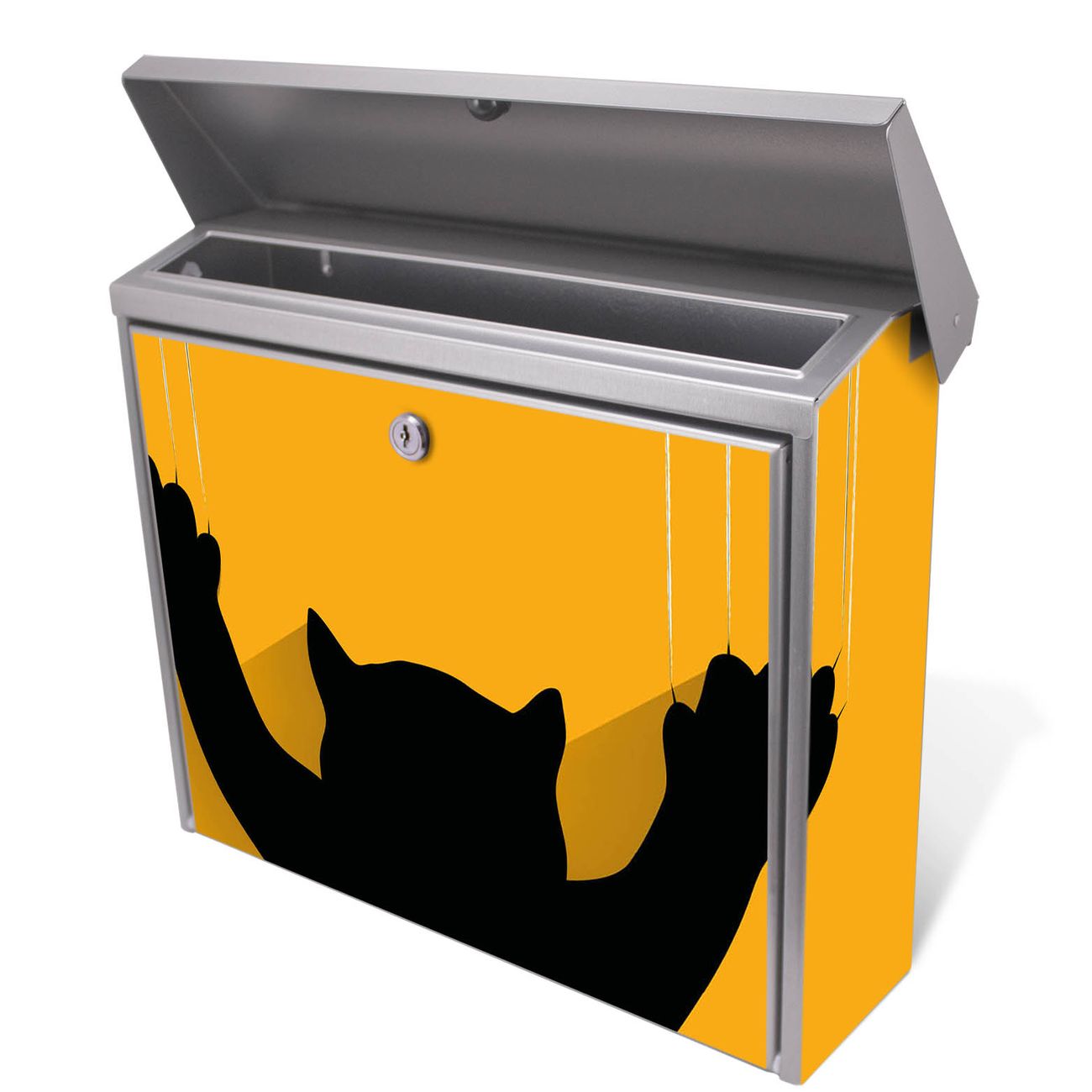 Der Briefkasten besteht aus Edelstahl, einem hochwertigen Material das witterungsbeständig ist. Das Motiv besteht aus einer wetter- und UV-festen Folie, die Ihren Briefkasten zusätzlich vor Kratzern schützt. Der Postkasten ist 31,5cm hoch, 38,5cm breit und 12cm tief. Der Briefeinwurf ist 33,2cm x 2,7cm, Format DIN C4. Der Briefkasten wird mit Montagematerial und zwei Schlüsseln geliefert.