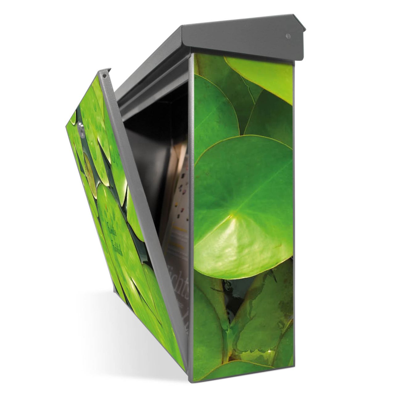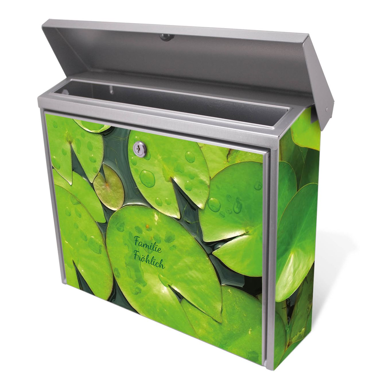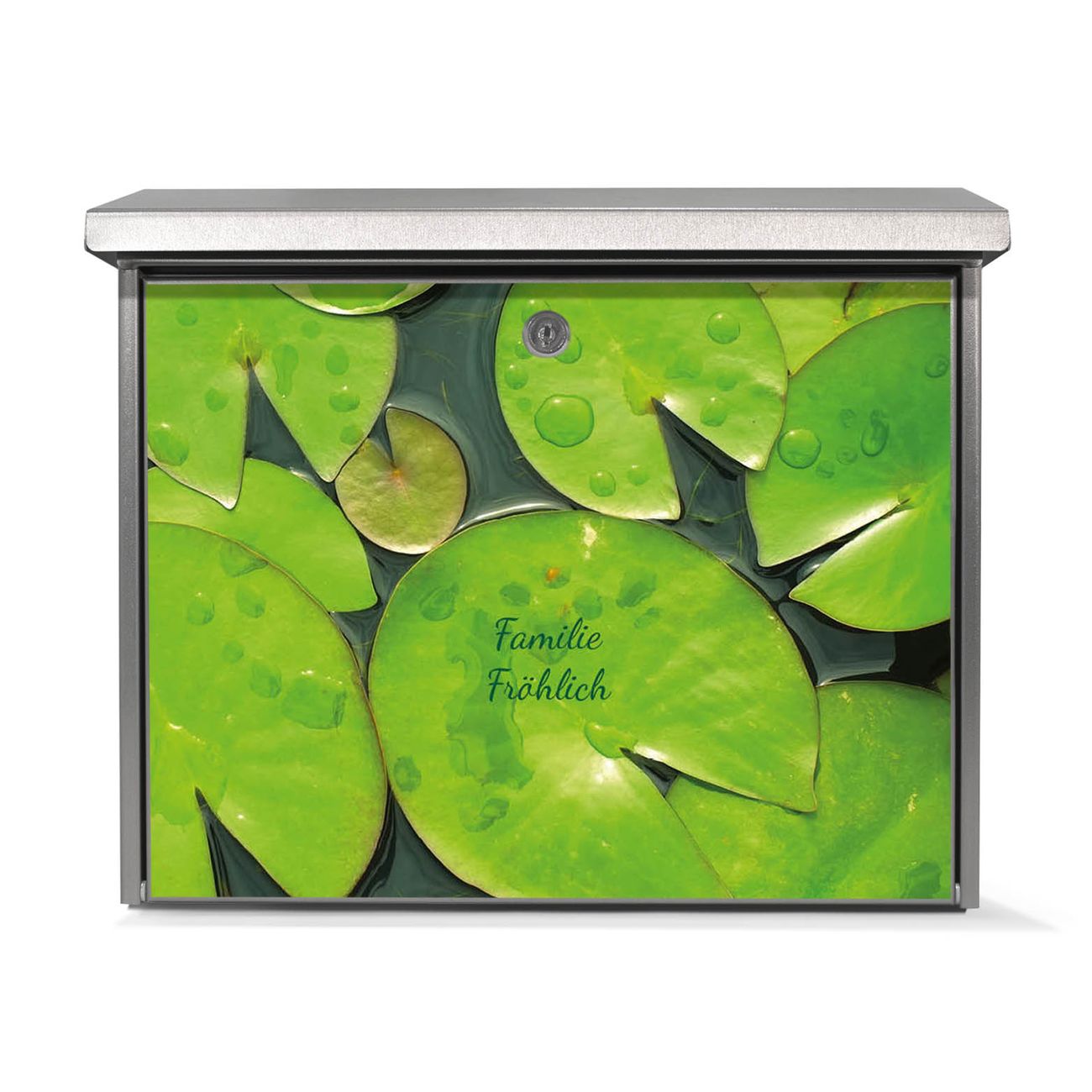Der Postkasten mit Seerosenblätter Motiv hat ein sehr ansprechendes und zeitloses Design. Unsere Motivpalette hält jede Menge Varianten bereit, ob klassisch, modern, verspielt oder witzig - für jeden haben wir das passende Motiv parat. Der Briefkasten ist das Aushängeschild Ihres Hauses.