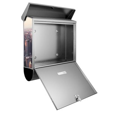Der Briefkasten besteht aus Edelstahl, einem hochwertigen Material das rostfrei und äußerst unempfindlich gegenüber Witterungseinflüssen ist. Das Motiv besteht aus einer wetter- und UV-festen Folie, die Ihren Briefkasten zusätzlich vor Kratzern schützt. Der Postkasten ist je nach Auswahl 38 x 39 x 12 CM oder 38 x 31,5 x 12 cm (BxHxT) groß. Der Briefeinwurf ist 33,2cm x 3,1cm, Format DIN C4. Der Briefkasten wird mit Montagematerial und zwei Schlüsseln geliefert.