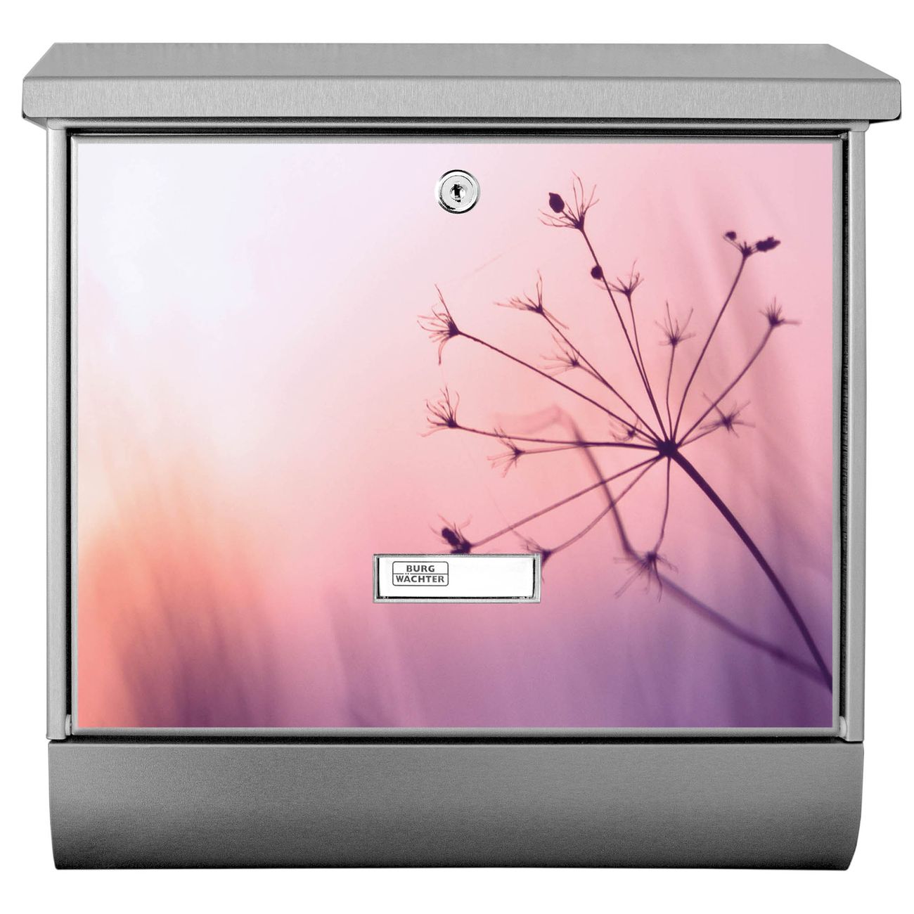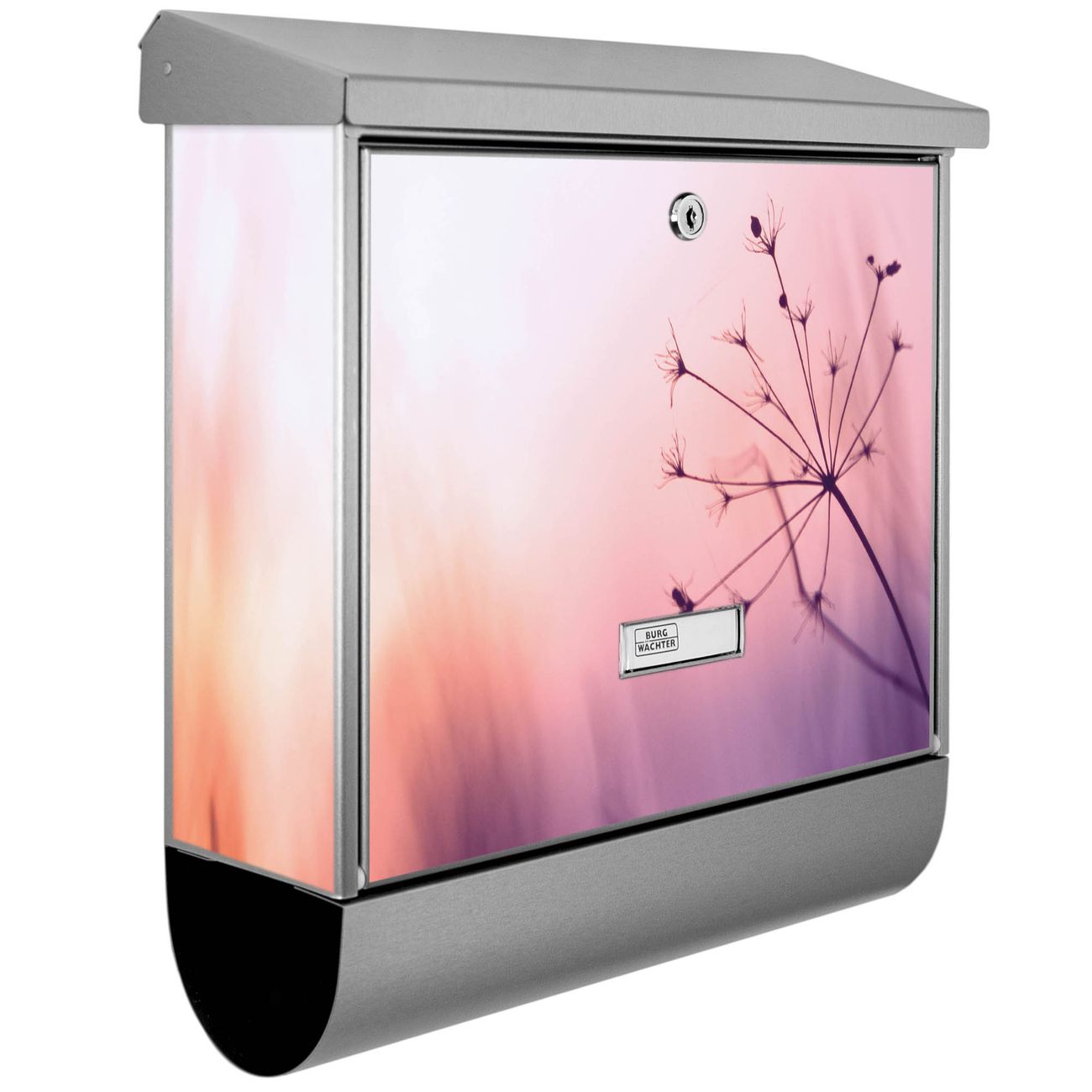 Der BURG-WÄCHTER Edelstahl Briefkasten mit Motiv Sommergras und Zeitungsrolle bietet Ihnen mit seinem Fassungsvermögen genügend Platz auch für große A4 Sendungen und Zeitschriften. Das integrierte Regendach schützt Ihre Post vor dem Eindringen von Regen.