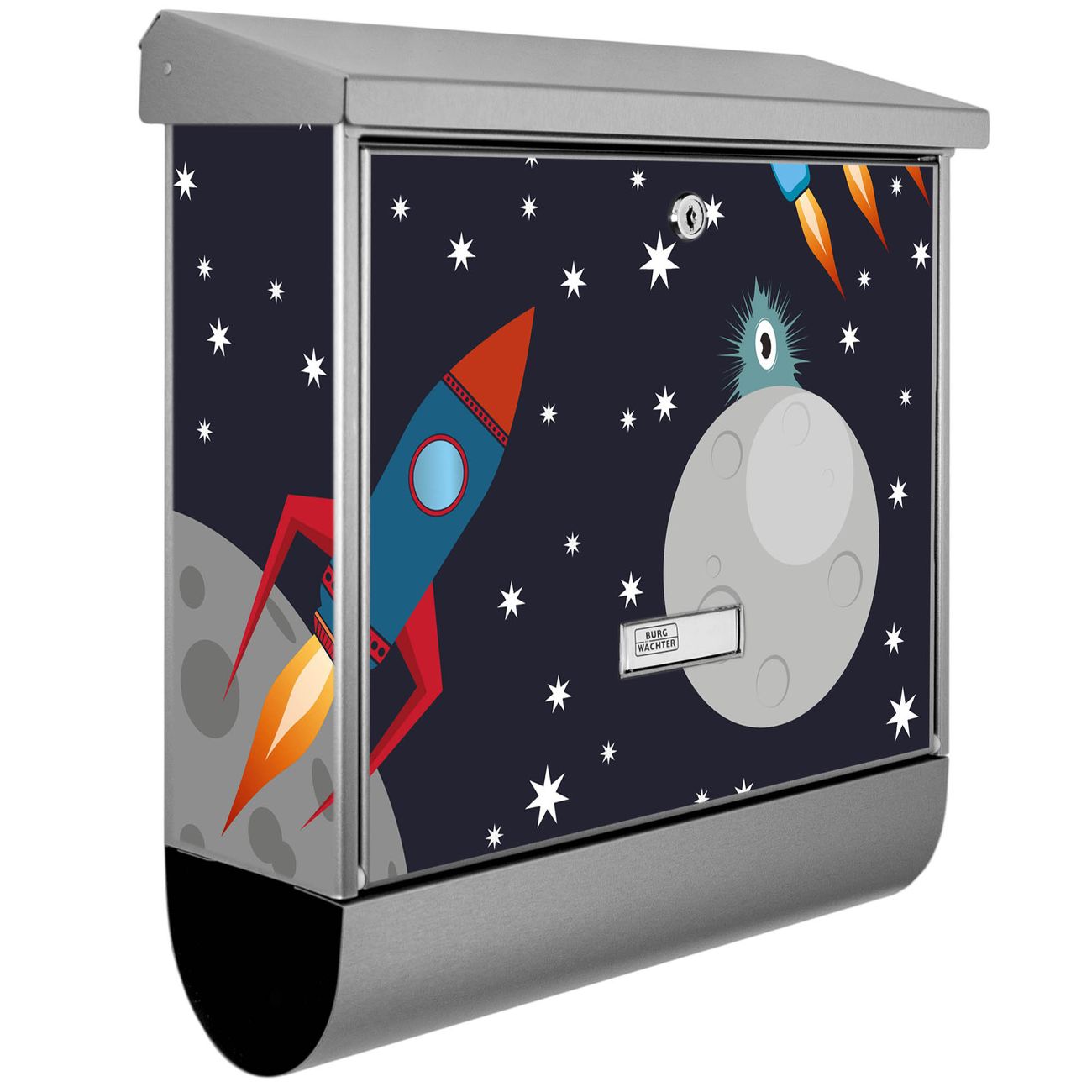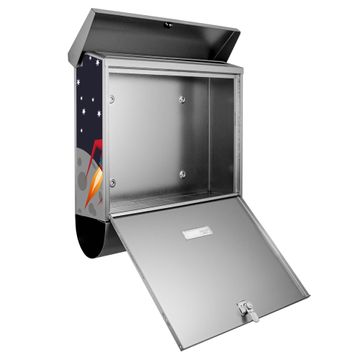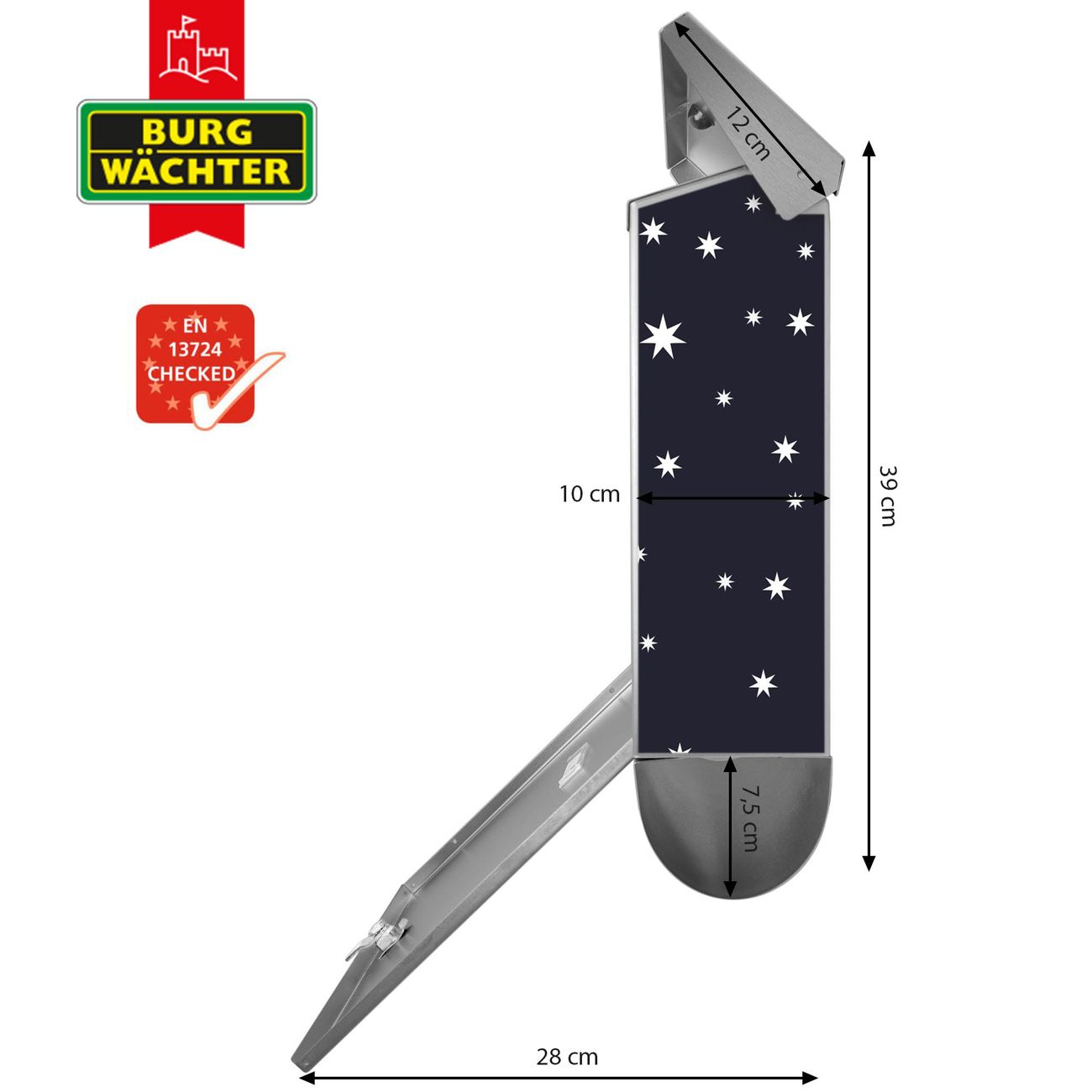 Der BURG-WÄCHTER Edelstahl Briefkasten mit Motiv Space Traffic und Zeitungsrolle bietet Ihnen mit seinem Fassungsvermögen genügend Platz auch für große A4 Sendungen und Zeitschriften. Das integrierte Regendach schützt Ihre Post vor dem Eindringen von Regen.