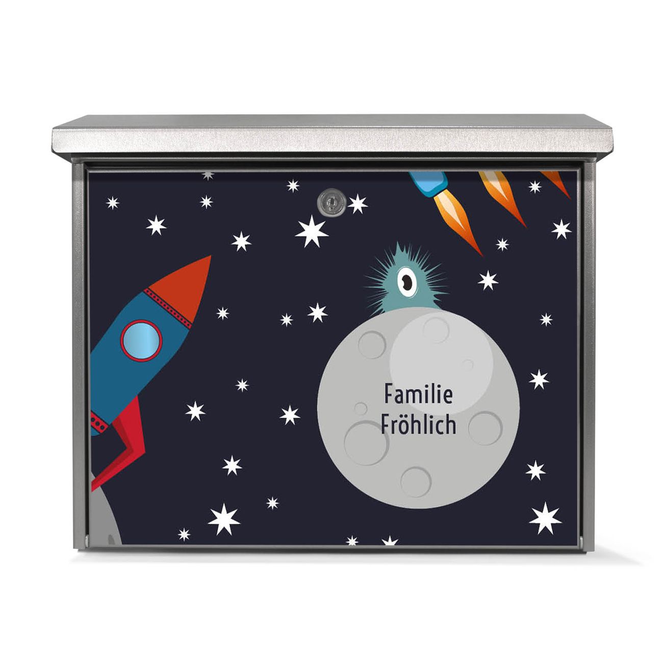 Der Postkasten mit Space Traffic Motiv hat ein sehr ansprechendes und zeitloses Design. Unsere Motivpalette hält jede Menge Varianten bereit, ob klassisch, modern, verspielt oder witzig - für jeden haben wir das passende Motiv parat. Der Briefkasten ist das Aushängeschild Ihres Hauses.