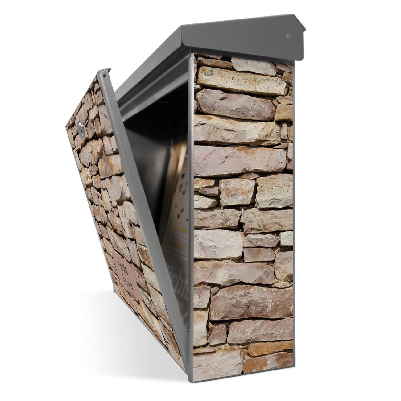 Sie können diesen Briefkasten sowohl als Wandbriefkasten montieren oder mit dem passenden Ständer als Standbriefkasten einbetonieren. Die gestaltete Motivfolie ist absolut wetterfest, UV-beständig und ein zusätzliches Schutzlaminat bewahrt Ihren Briefkasten vor unnötigen Kratzern.