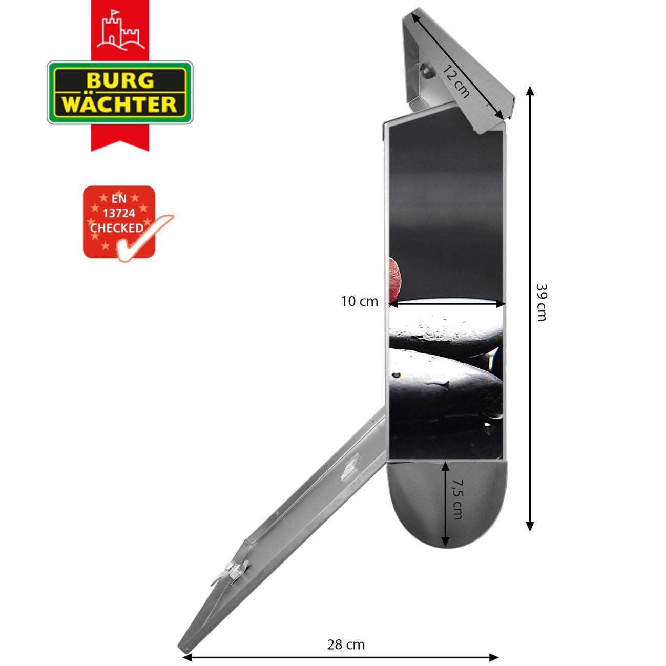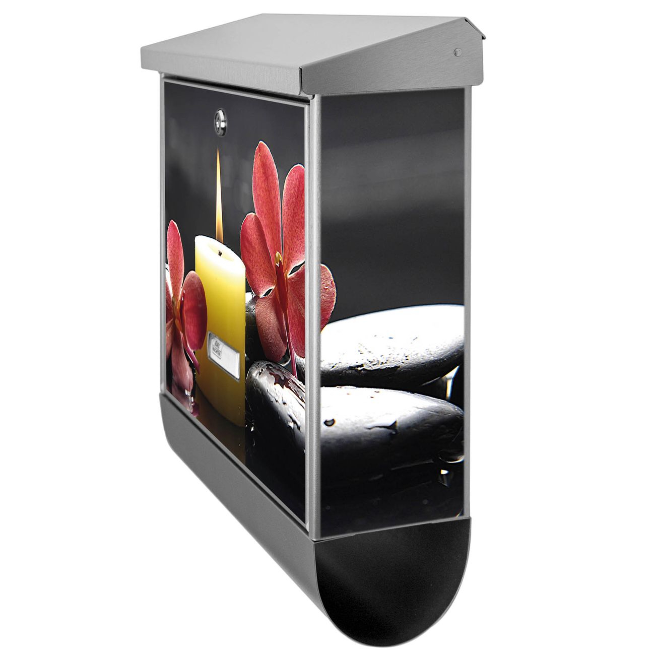 Der BURG-WÄCHTER Edelstahl Briefkasten mit Motiv Steine & Relax 5 und Zeitungsrolle bietet Ihnen mit seinem Fassungsvermögen genügend Platz auch für große A4 Sendungen und Zeitschriften. Das integrierte Regendach schützt Ihre Post vor dem Eindringen von Regen.