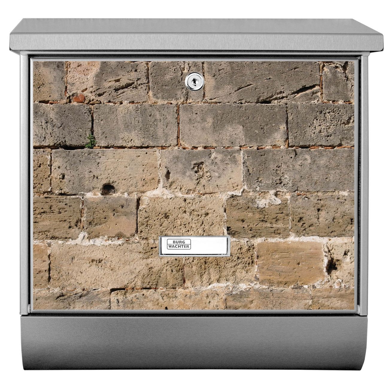 Der BURG-WÄCHTER Edelstahl Briefkasten mit Motiv Steinwand Antik und Zeitungsrolle bietet Ihnen mit seinem Fassungsvermögen genügend Platz auch für große A4 Sendungen und Zeitschriften. Das integrierte Regendach schützt Ihre Post vor dem Eindringen von Regen.