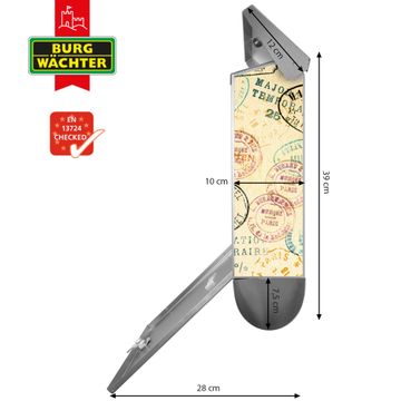 Ihr BURG-WÄCHTER Briefkasten wird in Sachsen in einer kleinen Manufaktur von Hand veredelt. Die Motivfolie ist lösungsmittelfrei und schutzlaminiert für einen langen Halt ausgelegt. Wir legen großen Wert auf die Verbindung von Funktionalität und Design. Sie erhalten Handarbeit aus Sachsen.