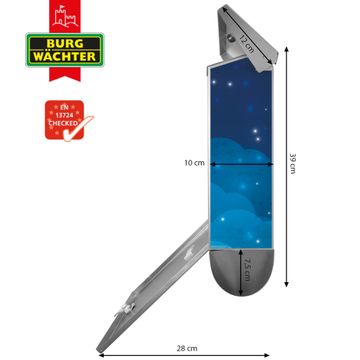 Der BURG-WÄCHTER Edelstahl Briefkasten mit Motiv Sternenhimmel 2 und Zeitungsrolle bietet Ihnen mit seinem Fassungsvermögen genügend Platz auch für große A4 Sendungen und Zeitschriften. Das integrierte Regendach schützt Ihre Post vor dem Eindringen von Regen.
