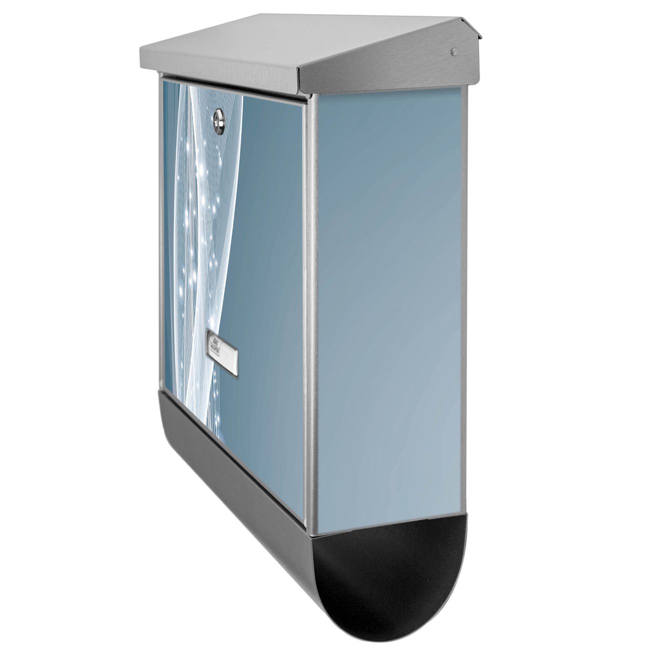 Der Briefkasten besteht aus Edelstahl, einem hochwertigen Material das rostfrei und äußerst unempfindlich gegenüber Witterungseinflüssen ist. Das Motiv besteht aus einer wetter- und UV-festen Folie, die Ihren Briefkasten zusätzlich vor Kratzern schützt. Der Postkasten ist je nach Auswahl 38 x 39 x 12 CM oder 38 x 31,5 x 12 cm (BxHxT) groß. Der Briefeinwurf ist 33,2cm x 3,1cm, Format DIN C4. Der Briefkasten wird mit Montagematerial und zwei Schlüsseln geliefert.