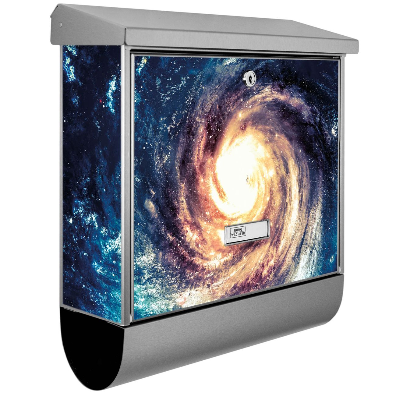 Der BURG-WÄCHTER Edelstahl Briefkasten mit Motiv Sternenwirbel und Zeitungsrolle bietet Ihnen mit seinem Fassungsvermögen genügend Platz auch für große A4 Sendungen und Zeitschriften. Das integrierte Regendach schützt Ihre Post vor dem Eindringen von Regen.