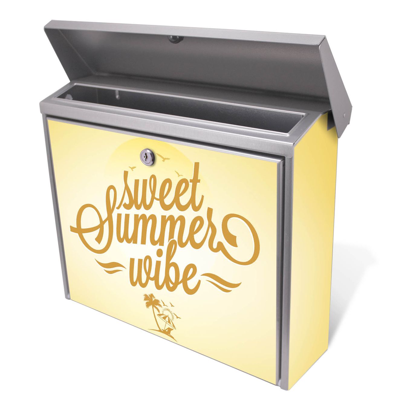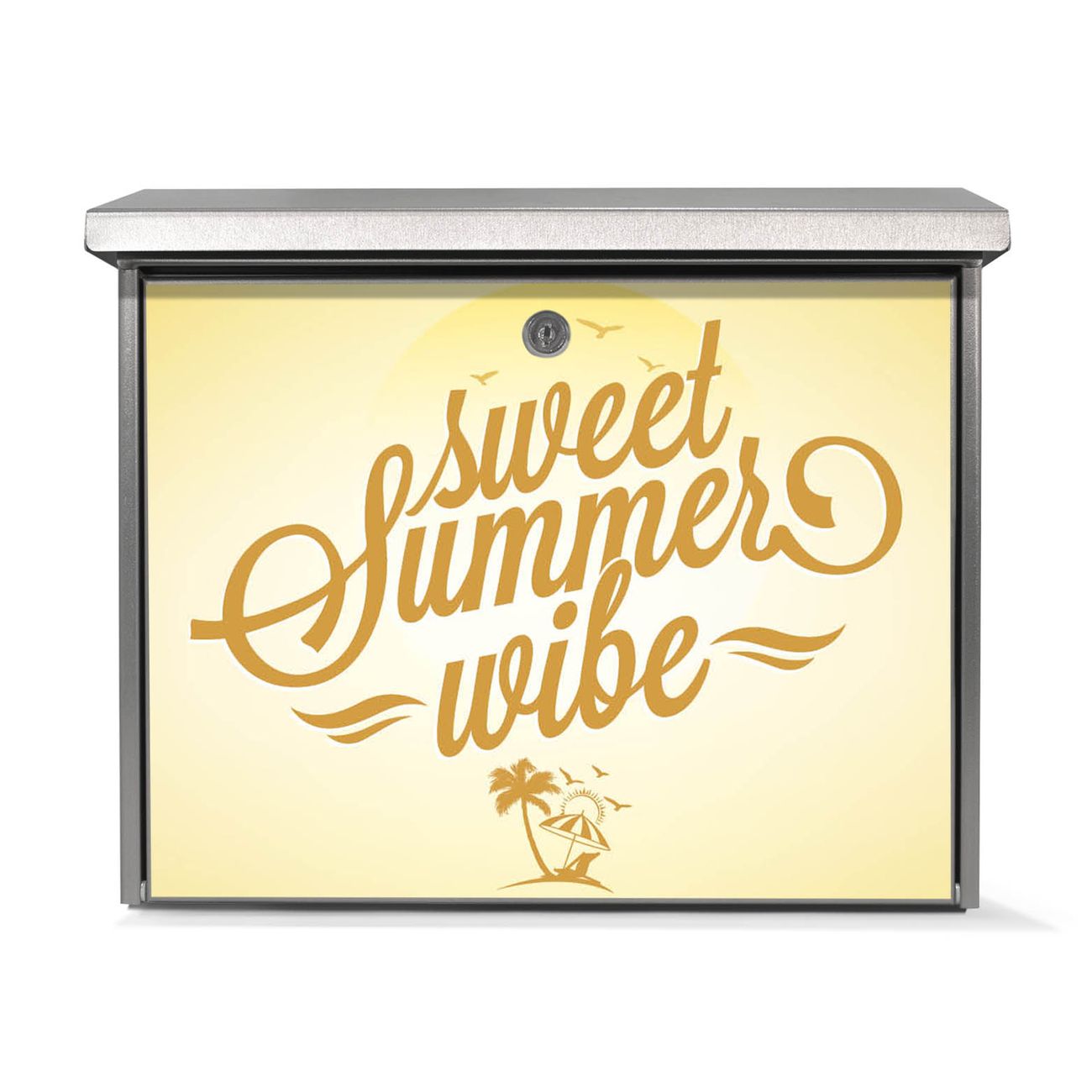 Der Postkasten mit Summer Wibe Motiv hat ein sehr ansprechendes und zeitloses Design. Unsere Motivpalette hält jede Menge Varianten bereit, ob klassisch, modern, verspielt oder witzig - für jeden haben wir das passende Motiv parat. Der Briefkasten ist das Aushängeschild Ihres Hauses.