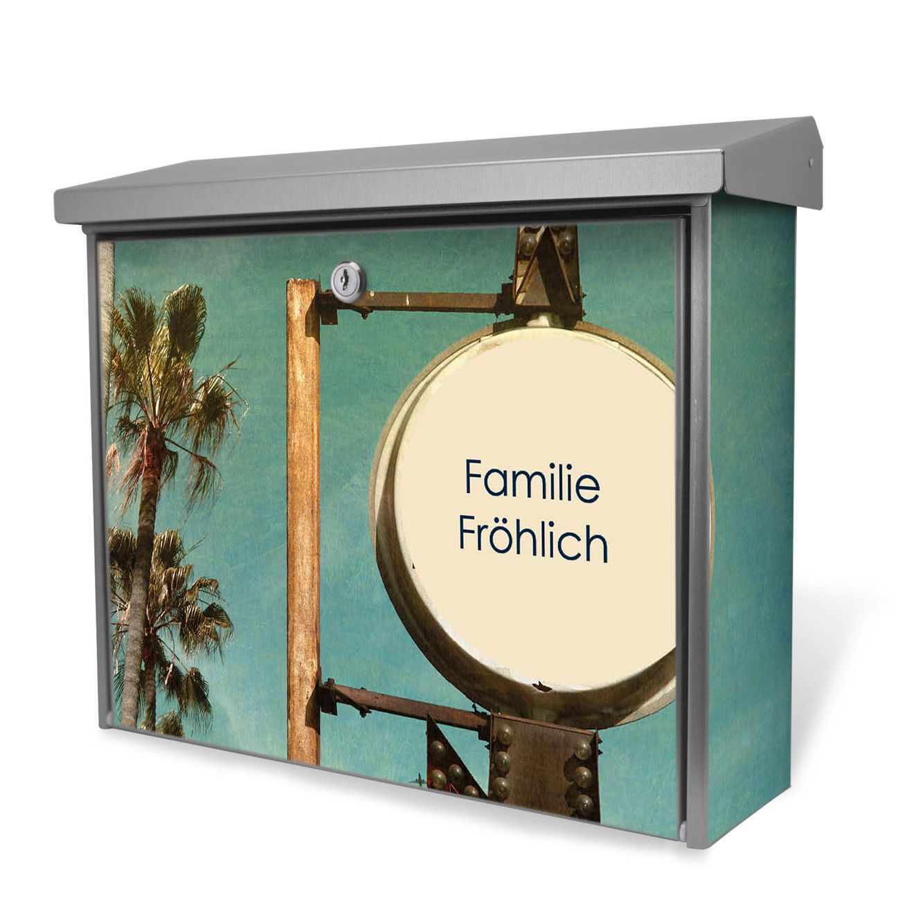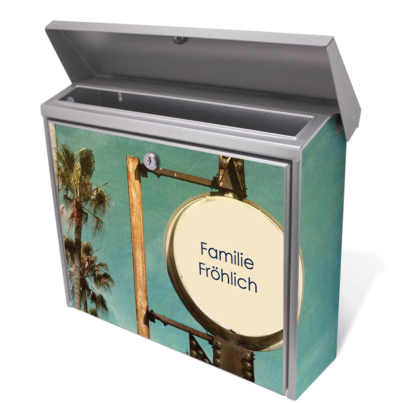 Der Postkasten mit Surf Beach Motiv hat ein sehr ansprechendes und zeitloses Design. Unsere Motivpalette hält jede Menge Varianten bereit, ob klassisch, modern, verspielt oder witzig - für jeden haben wir das passende Motiv parat. Der Briefkasten ist das Aushängeschild Ihres Hauses.