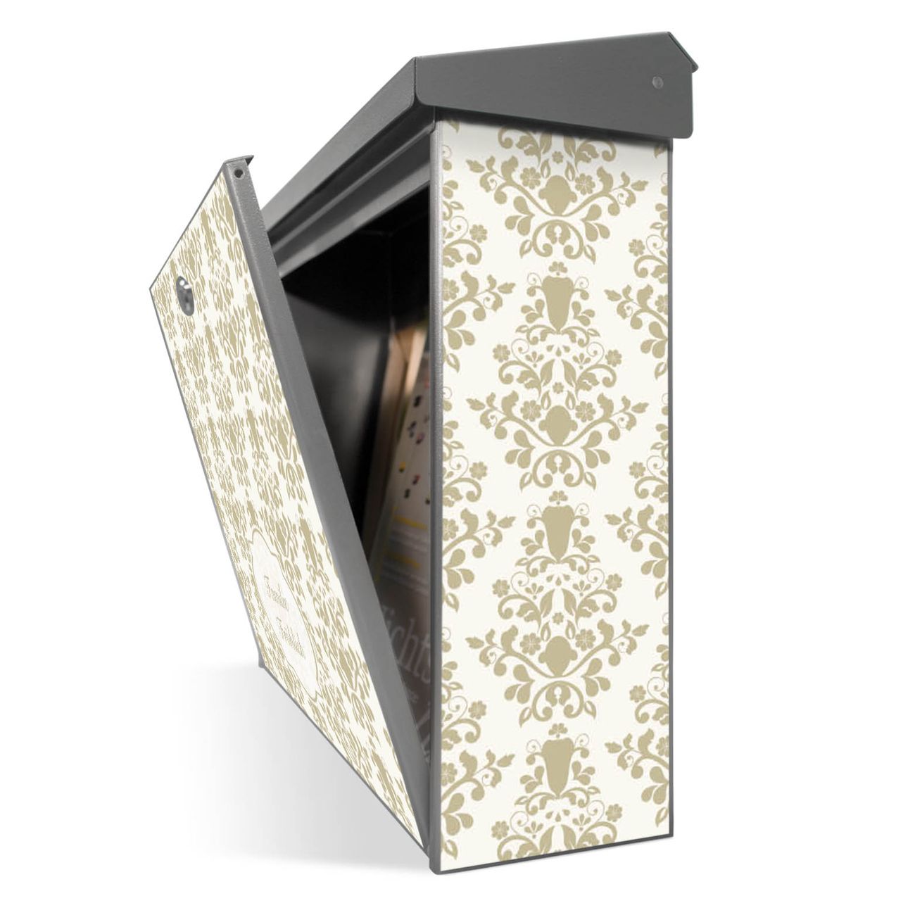 Der Postkasten mit Tapete Weiß Motiv hat ein sehr ansprechendes und zeitloses Design. Unsere Motivpalette hält jede Menge Varianten bereit, ob klassisch, modern, verspielt oder witzig - für jeden haben wir das passende Motiv parat. Der Briefkasten ist das Aushängeschild Ihres Hauses.