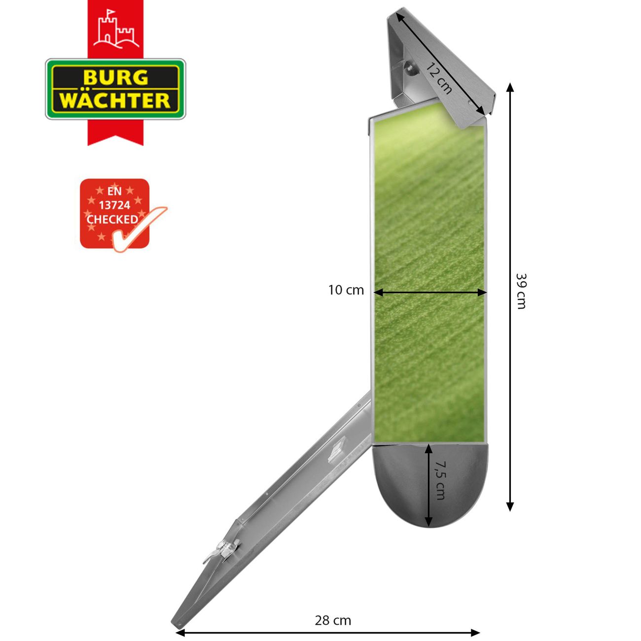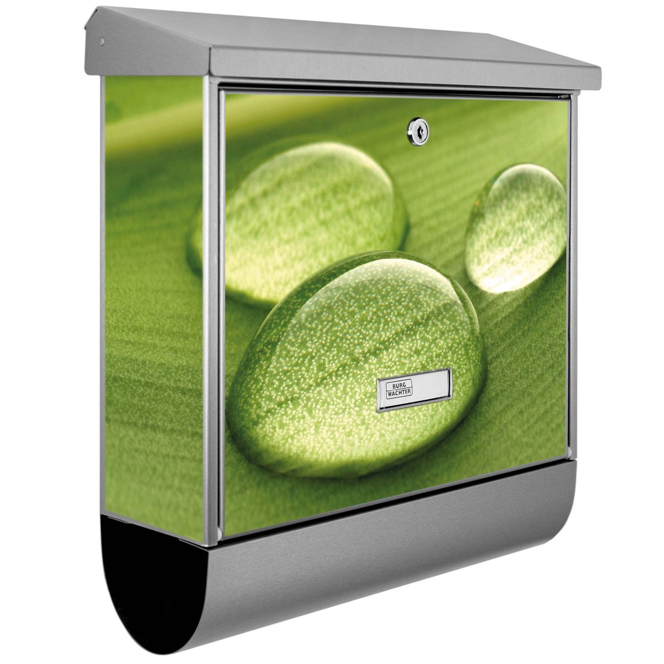 Der BURG-WÄCHTER Edelstahl Briefkasten mit Motiv Tautropfen und Zeitungsrolle bietet Ihnen mit seinem Fassungsvermögen genügend Platz auch für große A4 Sendungen und Zeitschriften. Das integrierte Regendach schützt Ihre Post vor dem Eindringen von Regen.