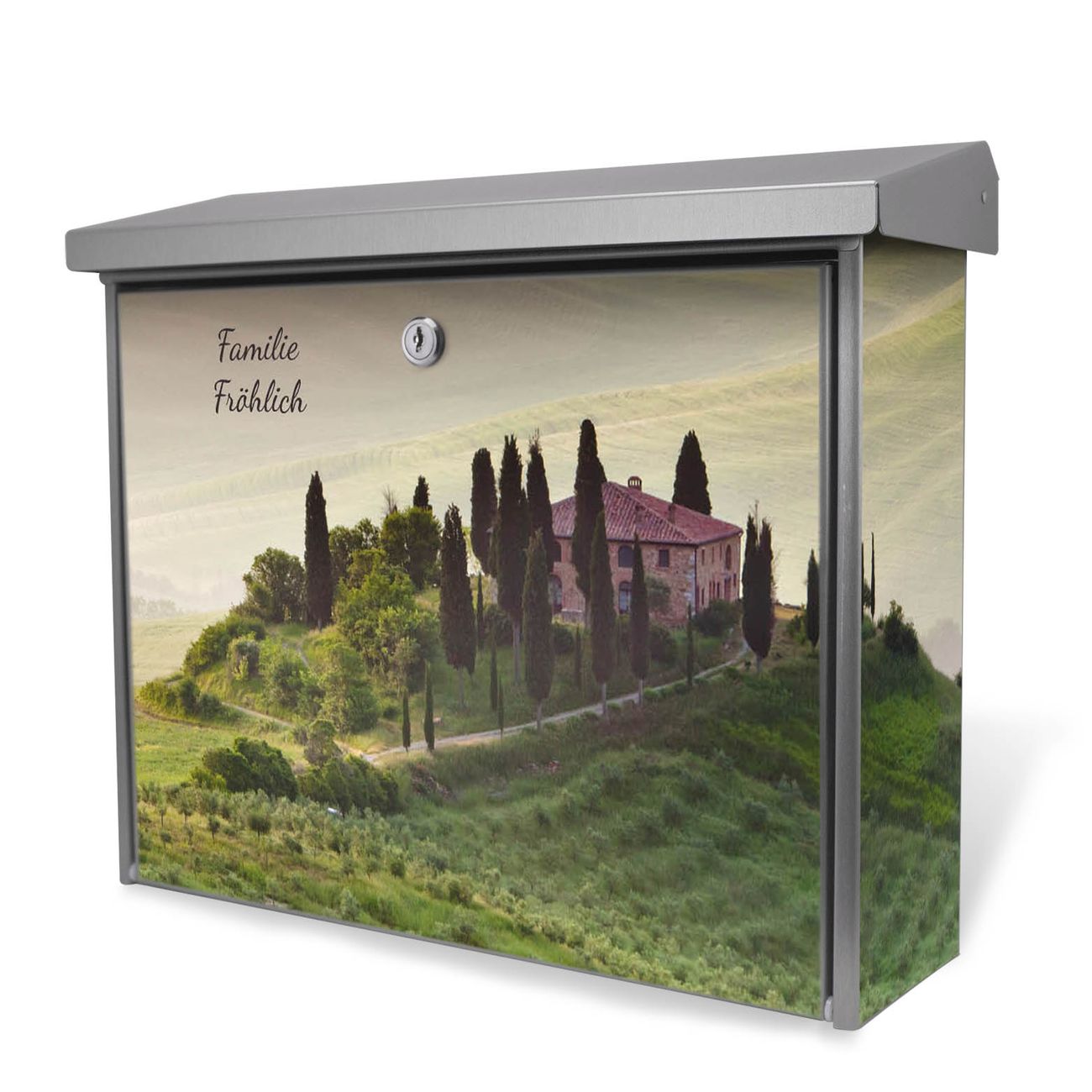 Der Postkasten mit Toscana Motiv hat ein sehr ansprechendes und zeitloses Design. Unsere Motivpalette hält jede Menge Varianten bereit, ob klassisch, modern, verspielt oder witzig - für jeden haben wir das passende Motiv parat. Der Briefkasten ist das Aushängeschild Ihres Hauses.