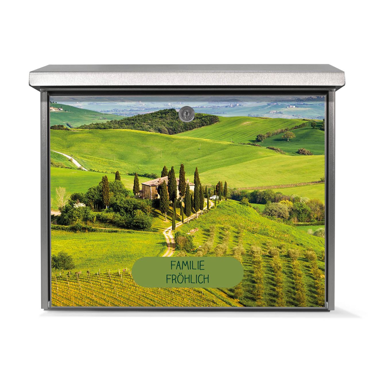 Der Postkasten mit Toskana Motiv hat ein sehr ansprechendes und zeitloses Design. Unsere Motivpalette hält jede Menge Varianten bereit, ob klassisch, modern, verspielt oder witzig - für jeden haben wir das passende Motiv parat. Der Briefkasten ist das Aushängeschild Ihres Hauses.