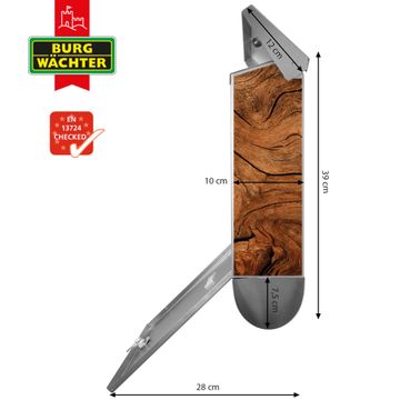 Der BURG-WÄCHTER Edelstahl Briefkasten mit Motiv Trockenes Holz und Zeitungsrolle bietet Ihnen mit seinem Fassungsvermögen genügend Platz auch für große A4 Sendungen und Zeitschriften. Das integrierte Regendach schützt Ihre Post vor dem Eindringen von Regen.