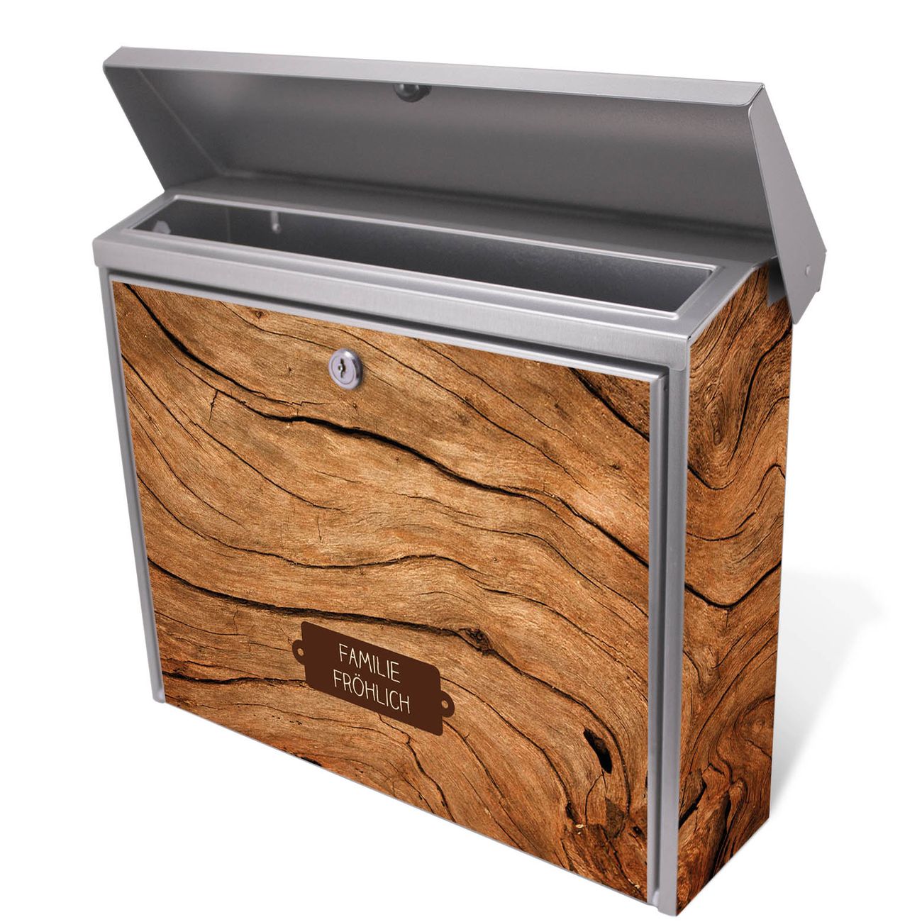 Der Postkasten mit Trockenes Holz Motiv hat ein sehr ansprechendes und zeitloses Design. Unsere Motivpalette hält jede Menge Varianten bereit, ob klassisch, modern, verspielt oder witzig - für jeden haben wir das passende Motiv parat. Der Briefkasten ist das Aushängeschild Ihres Hauses.